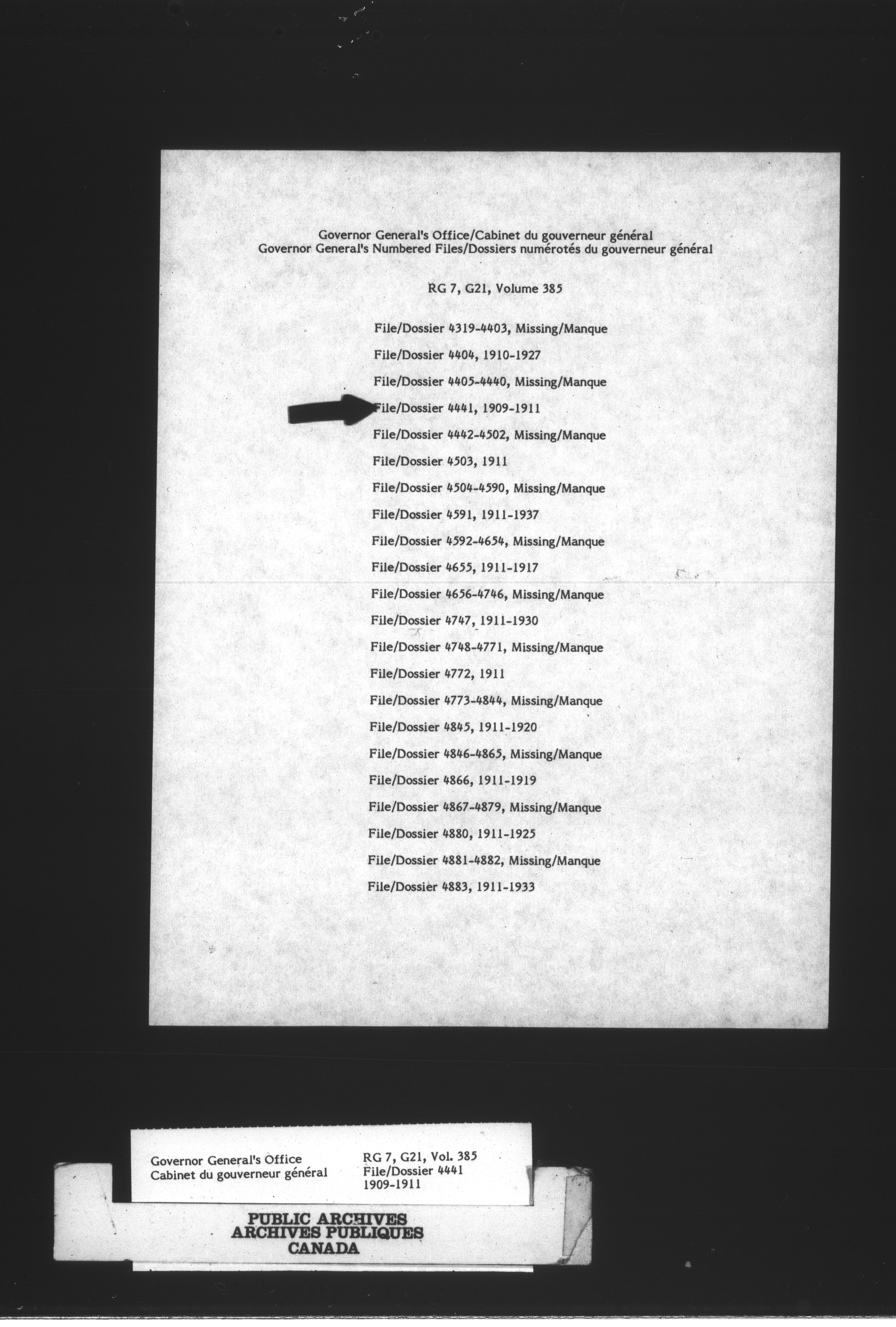 [Governor General] numbered files ; [Gouverneur-générale] dossiers numérotés - T-1485