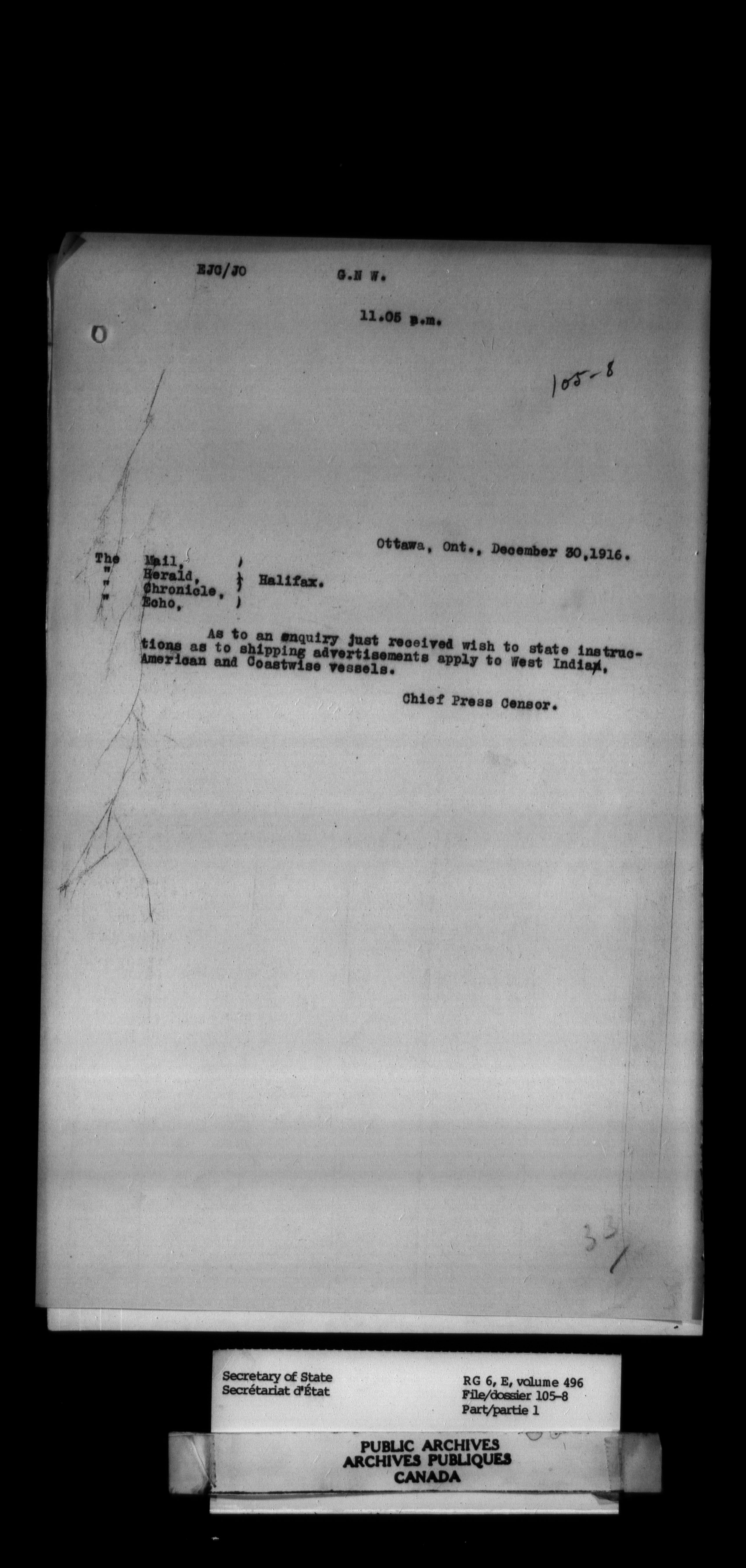 Secretary of State : Chief Press Censor - 15