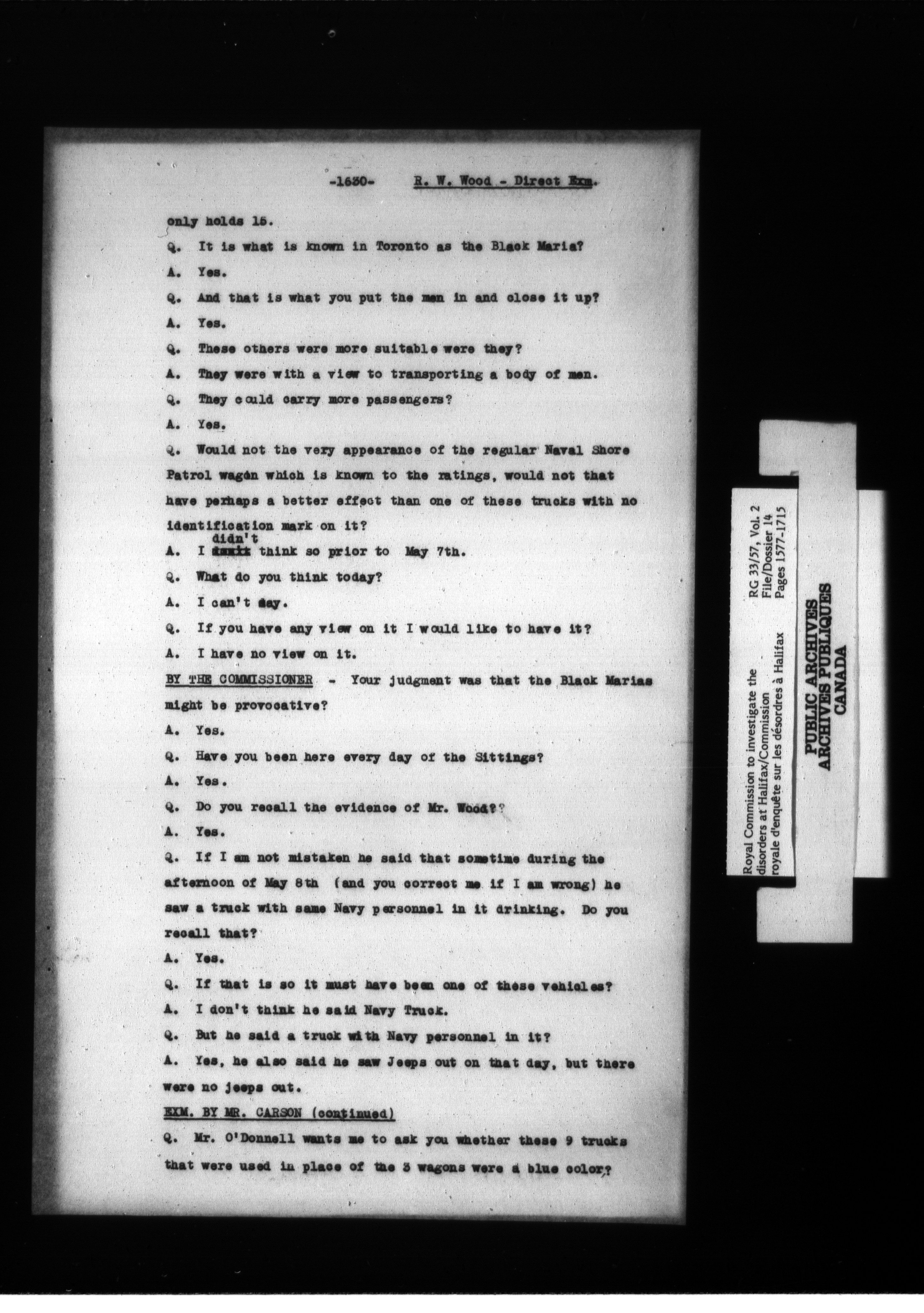 Royal Commission to Inquire into the Disorders at Halifax, Nova Scotia, and Vicinity thereof, During a Celebration of the Declaration of Victory over Germany on the 7th and 8th May, 1945 - 1519
