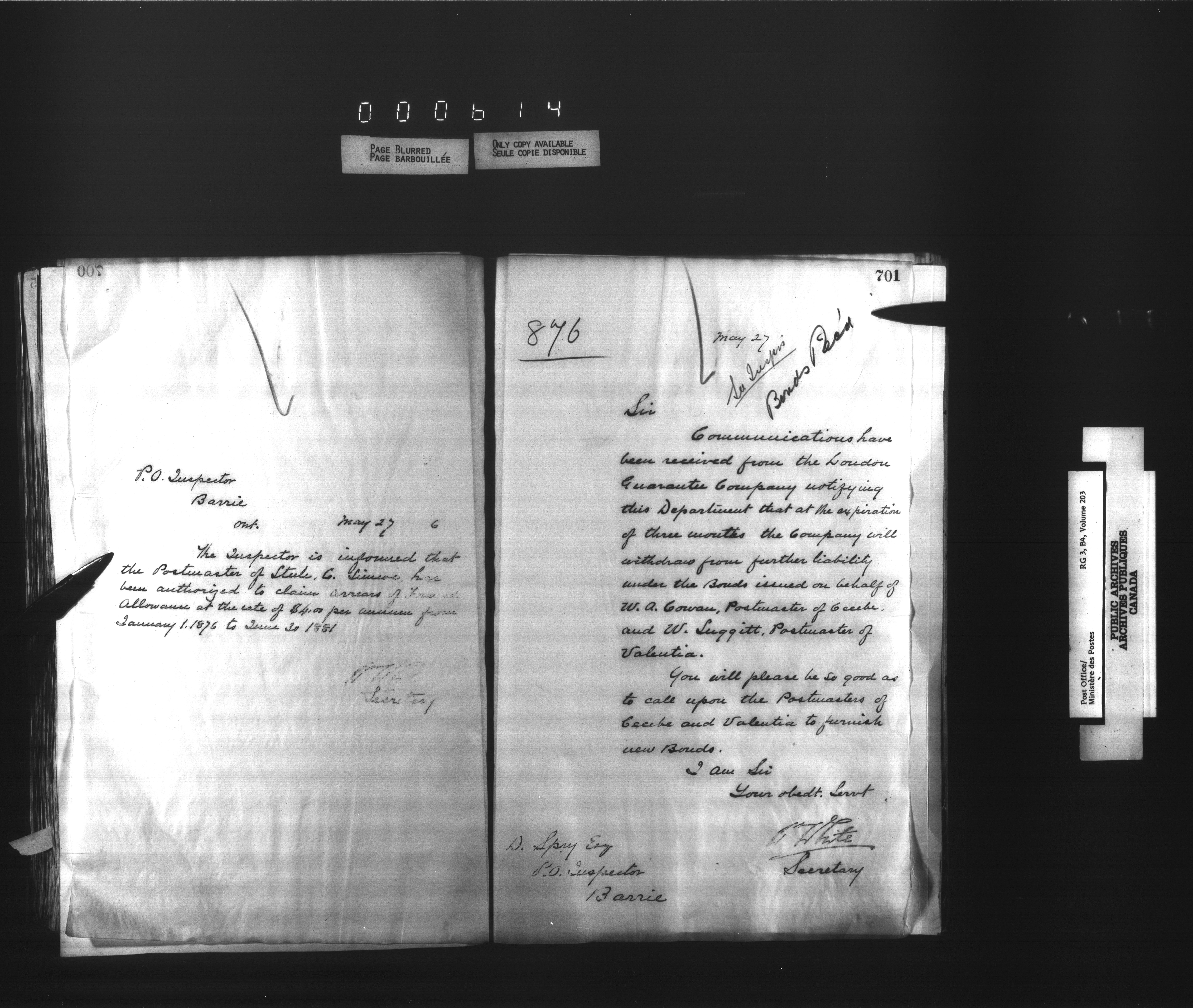 Deputy Postmaster General : correspondence addressed to the Post Office Inspectors, 1851-1902 : T-1536