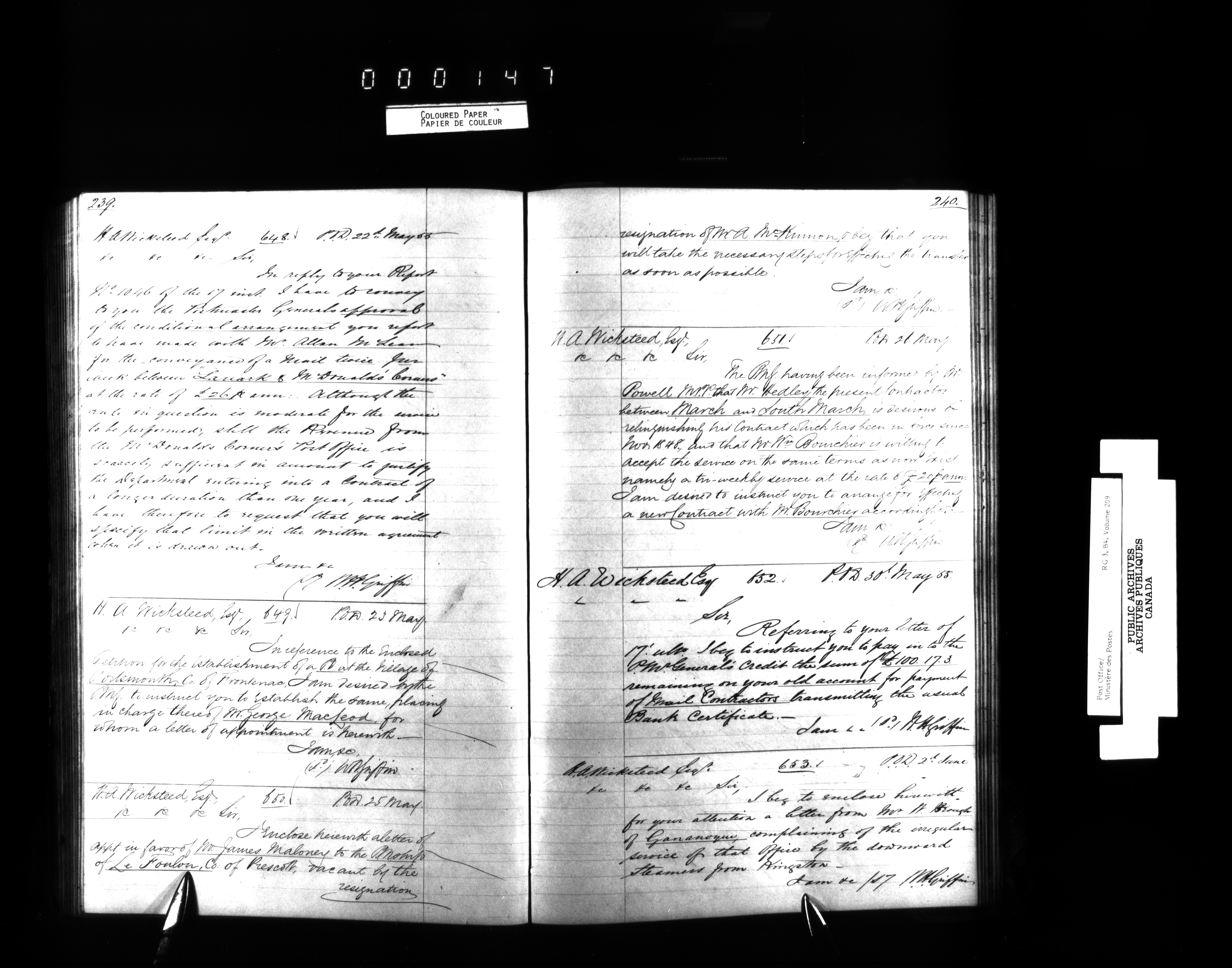 Deputy Postmaster General : correspondence addressed to the Post Office Inspectors, 1851-1902 : T-1541