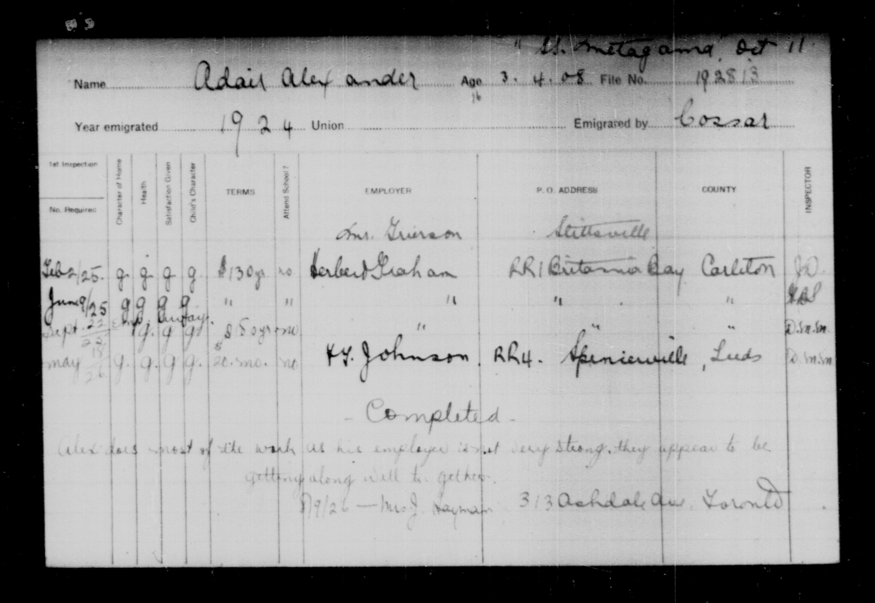 Department of Immigration: Juvenile inspection report cards - 15420