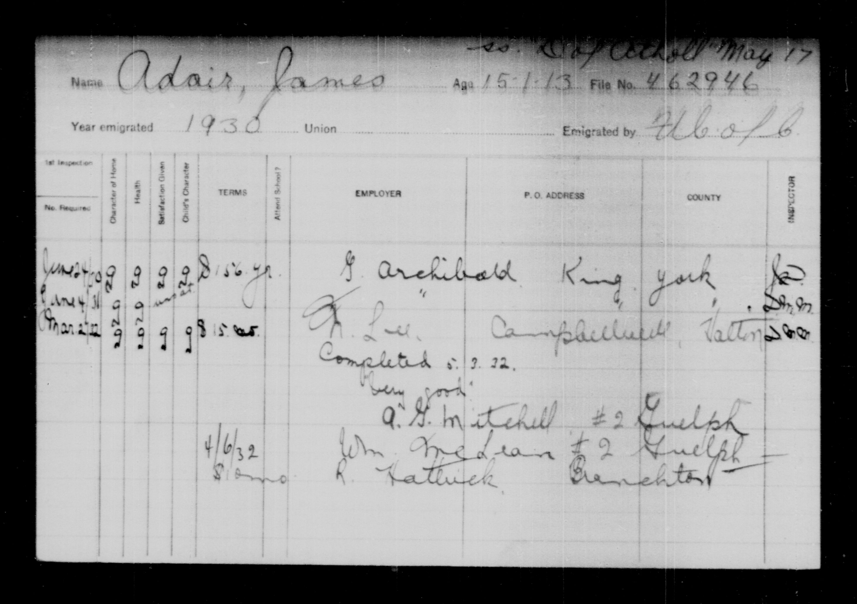 Department of Immigration: Juvenile inspection report cards - 15420