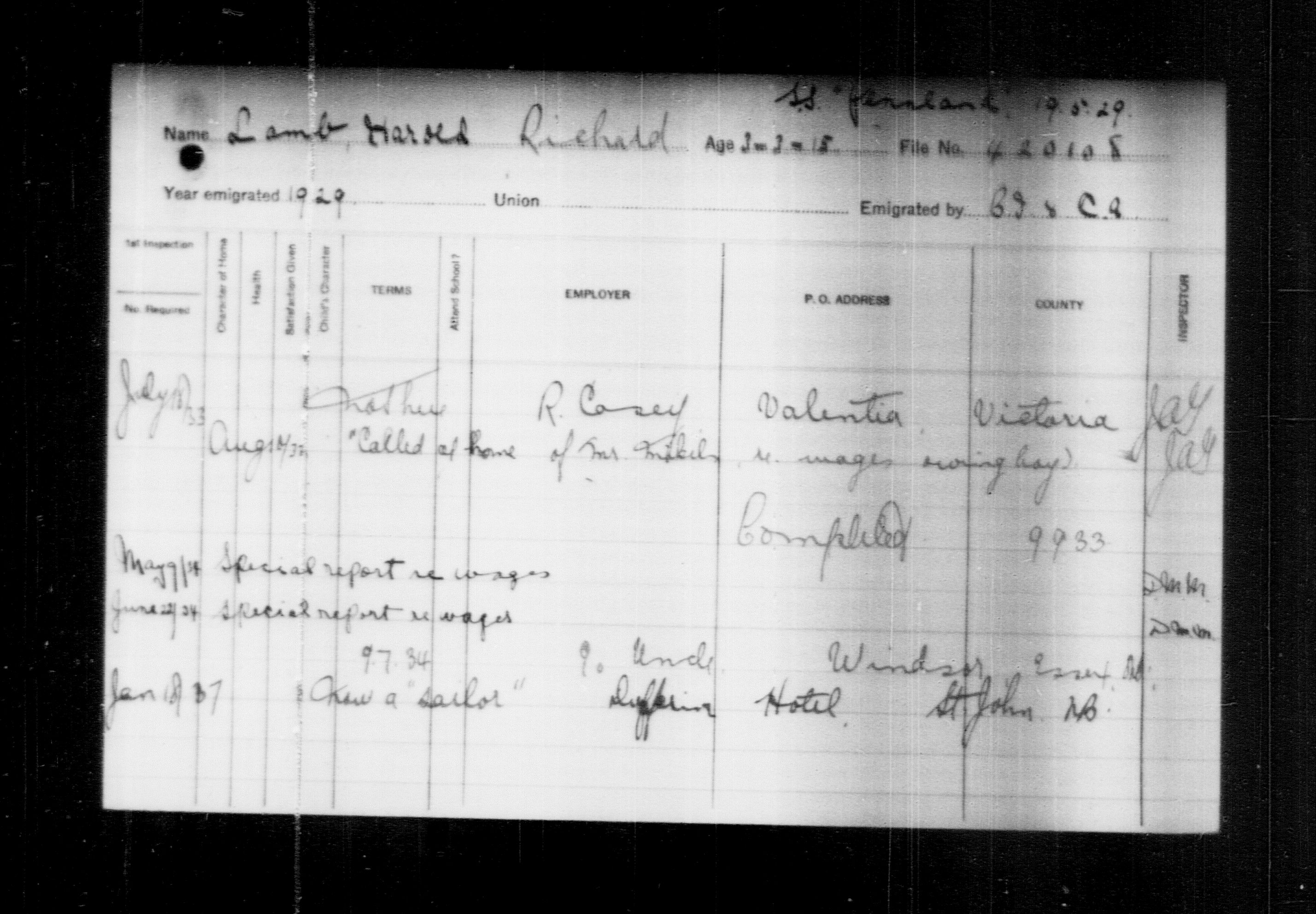 Department of Immigration : Juvenile inspection report cards [ca. 1913-1932] : T-15423