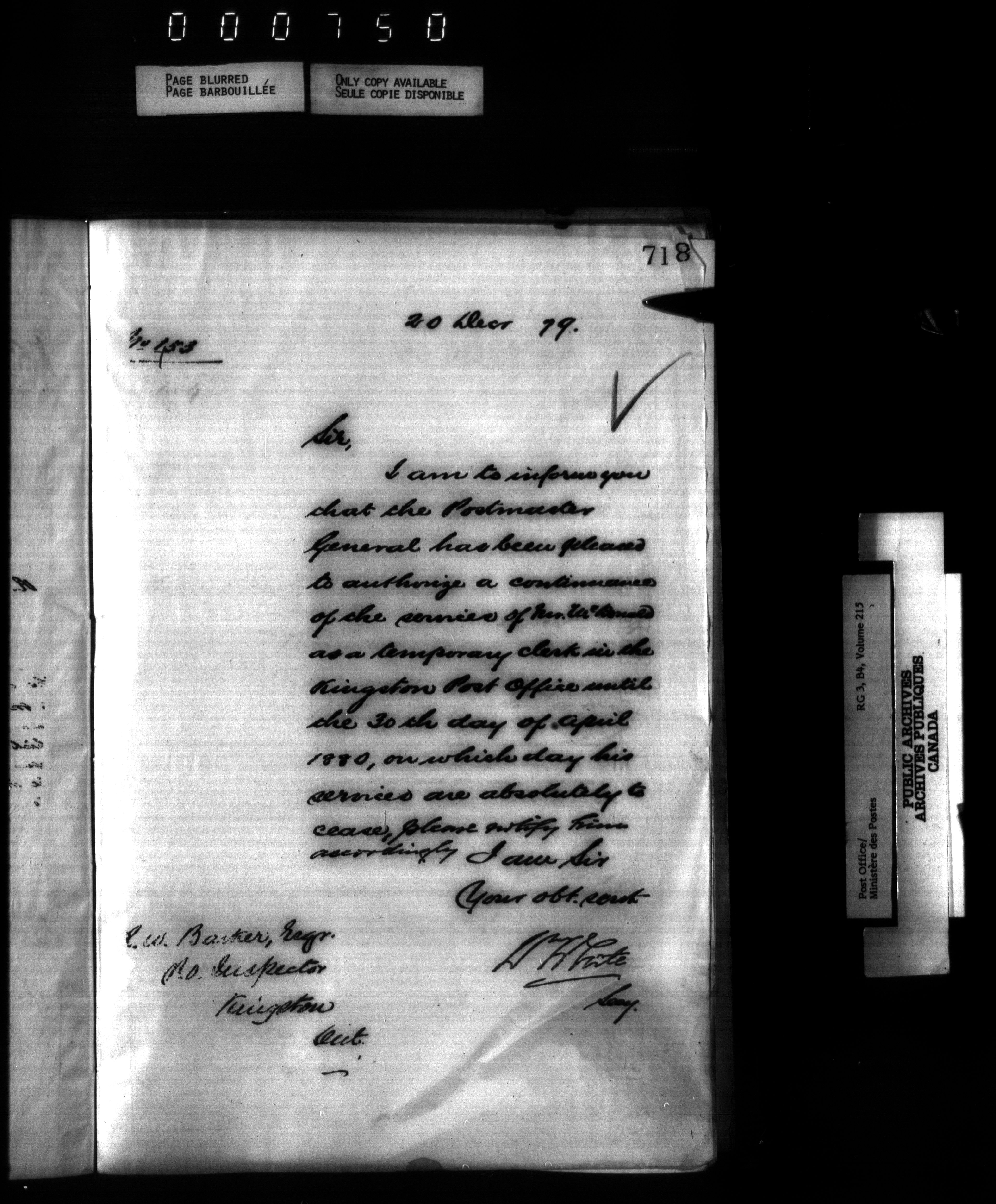 Deputy Postmaster General : correspondence addressed to the Post Office Inspectors, 1851-1902 : T-1544