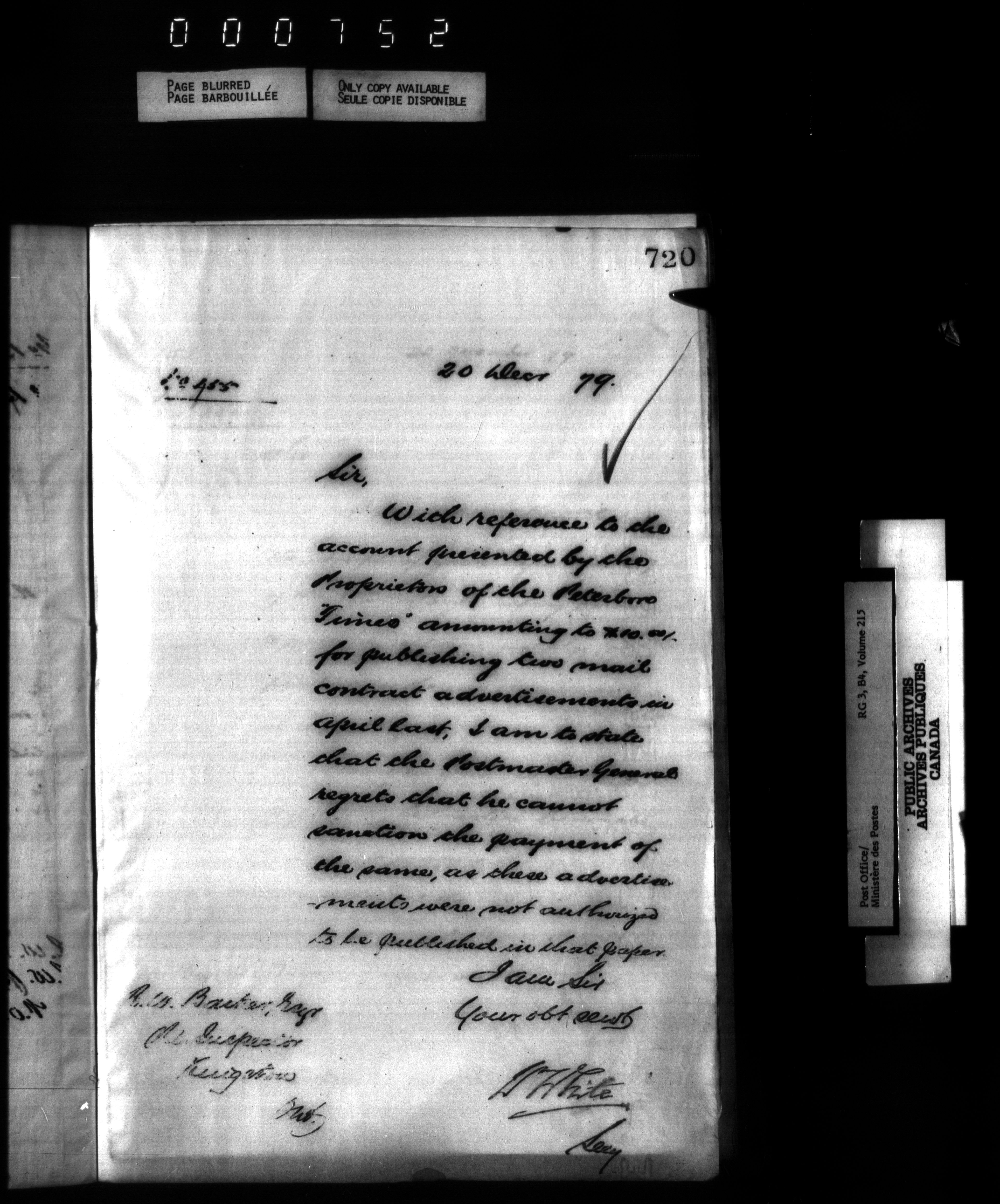 Deputy Postmaster General : correspondence addressed to the Post Office Inspectors, 1851-1902 - 1544