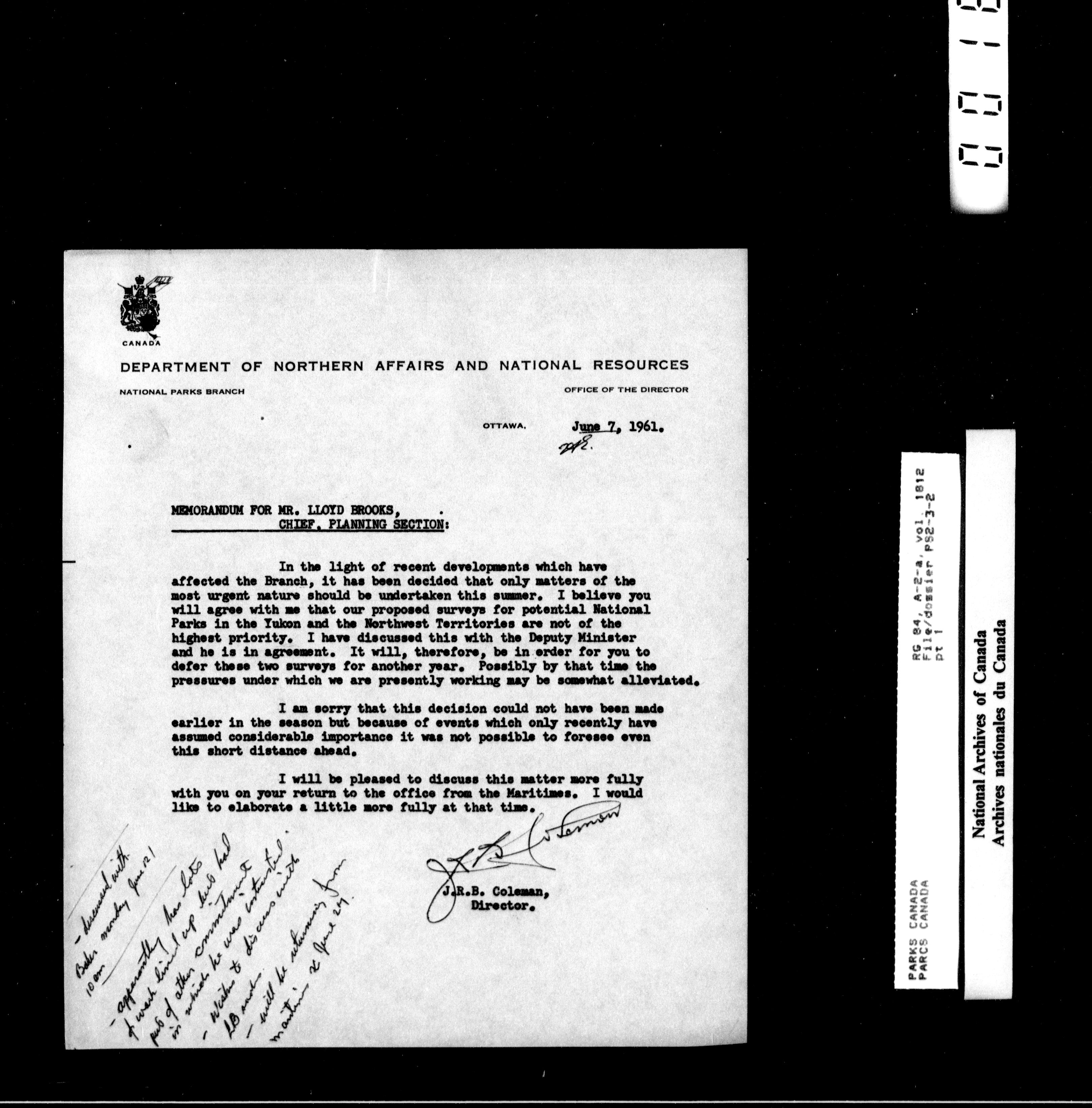 Department of Canadian Heritage, Canadian Parks Service : Park/subject classification system - 15481