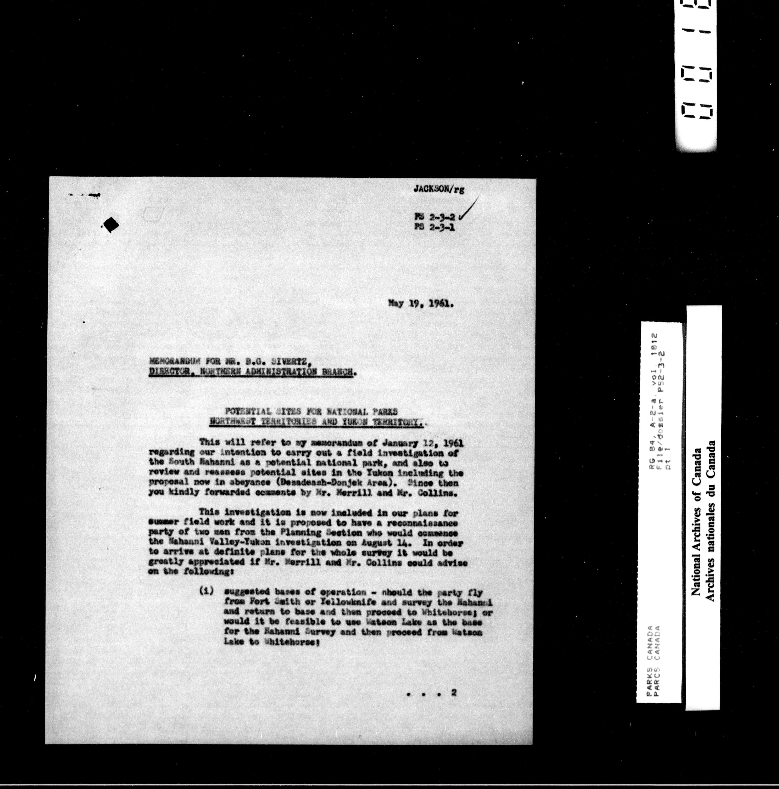 Department of Canadian Heritage, Canadian Parks Service : Park/subject classification system - 15481