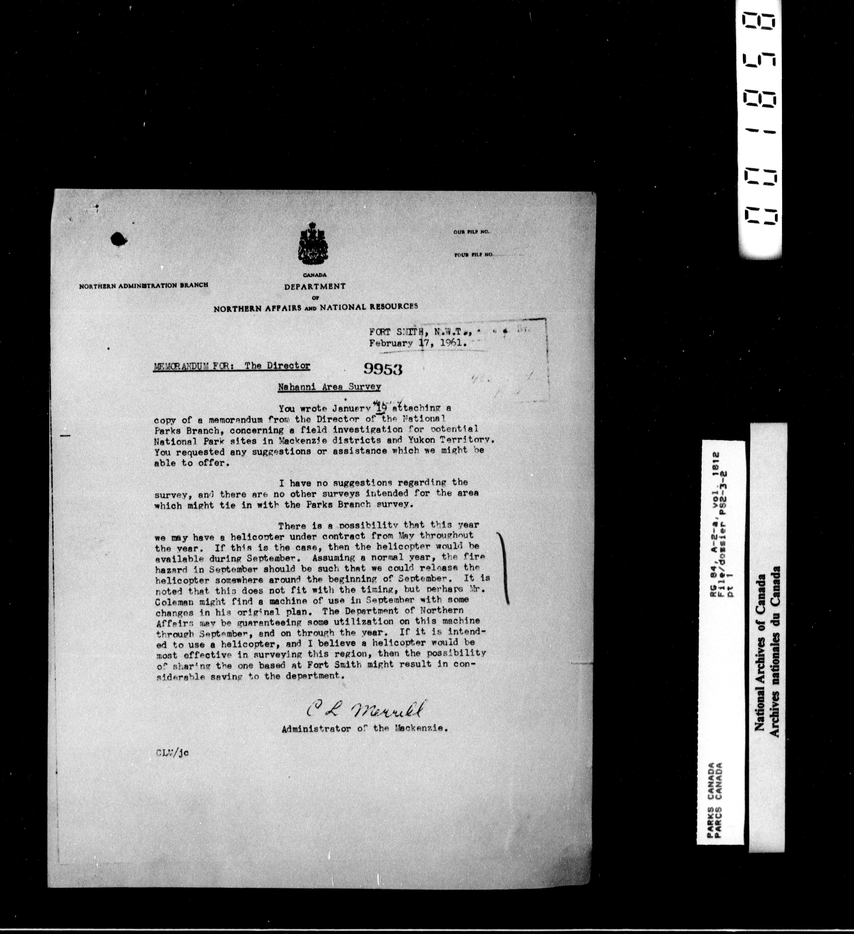 Department of Canadian Heritage, Canadian Parks Service : Park/subject classification system - 15481