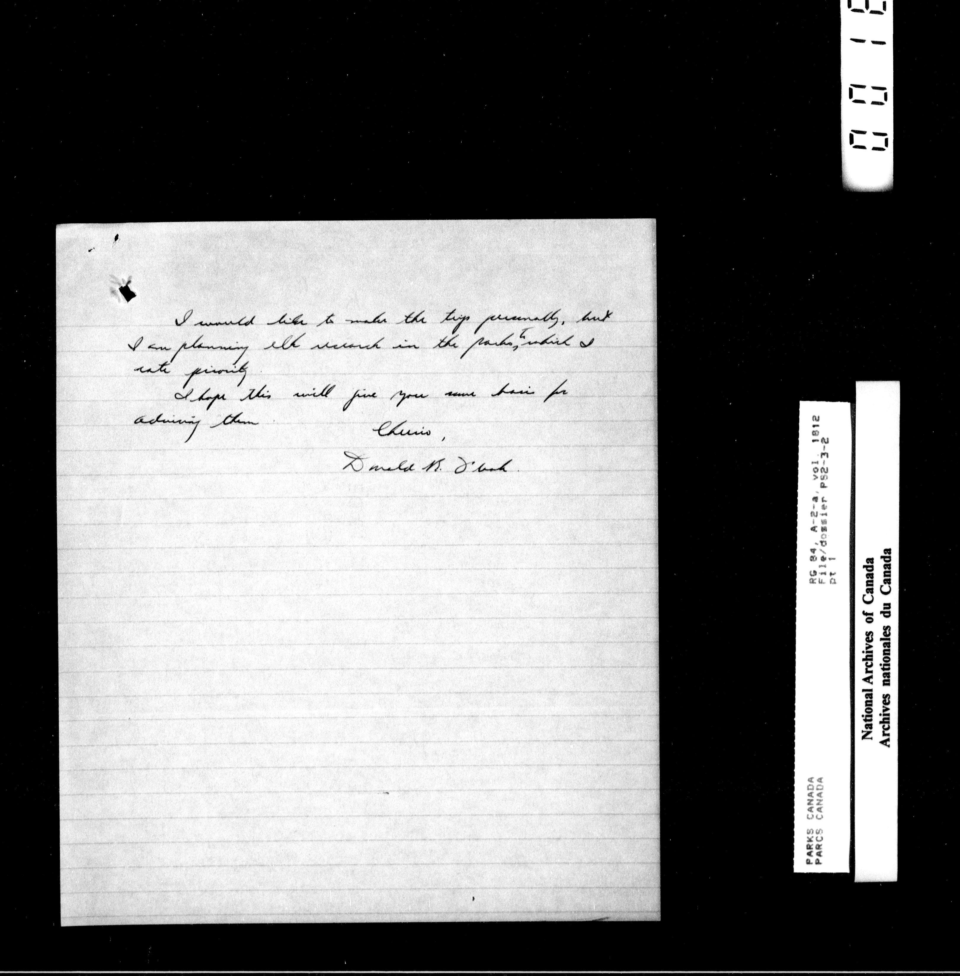 Department of Canadian Heritage, Canadian Parks Service : Park/subject classification system - 15481
