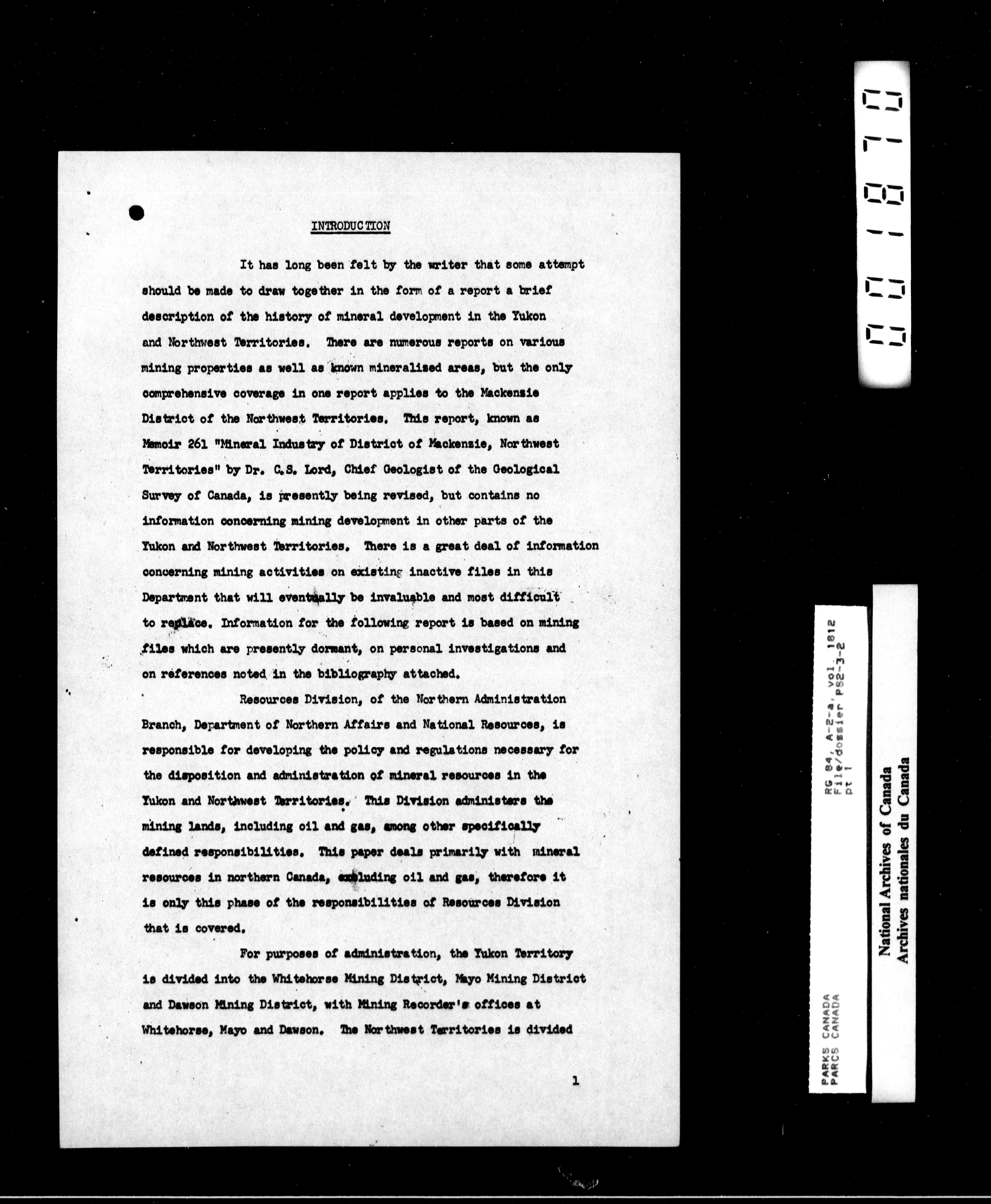 Department of Canadian Heritage, Canadian Parks Service : Park/subject classification system - 15481