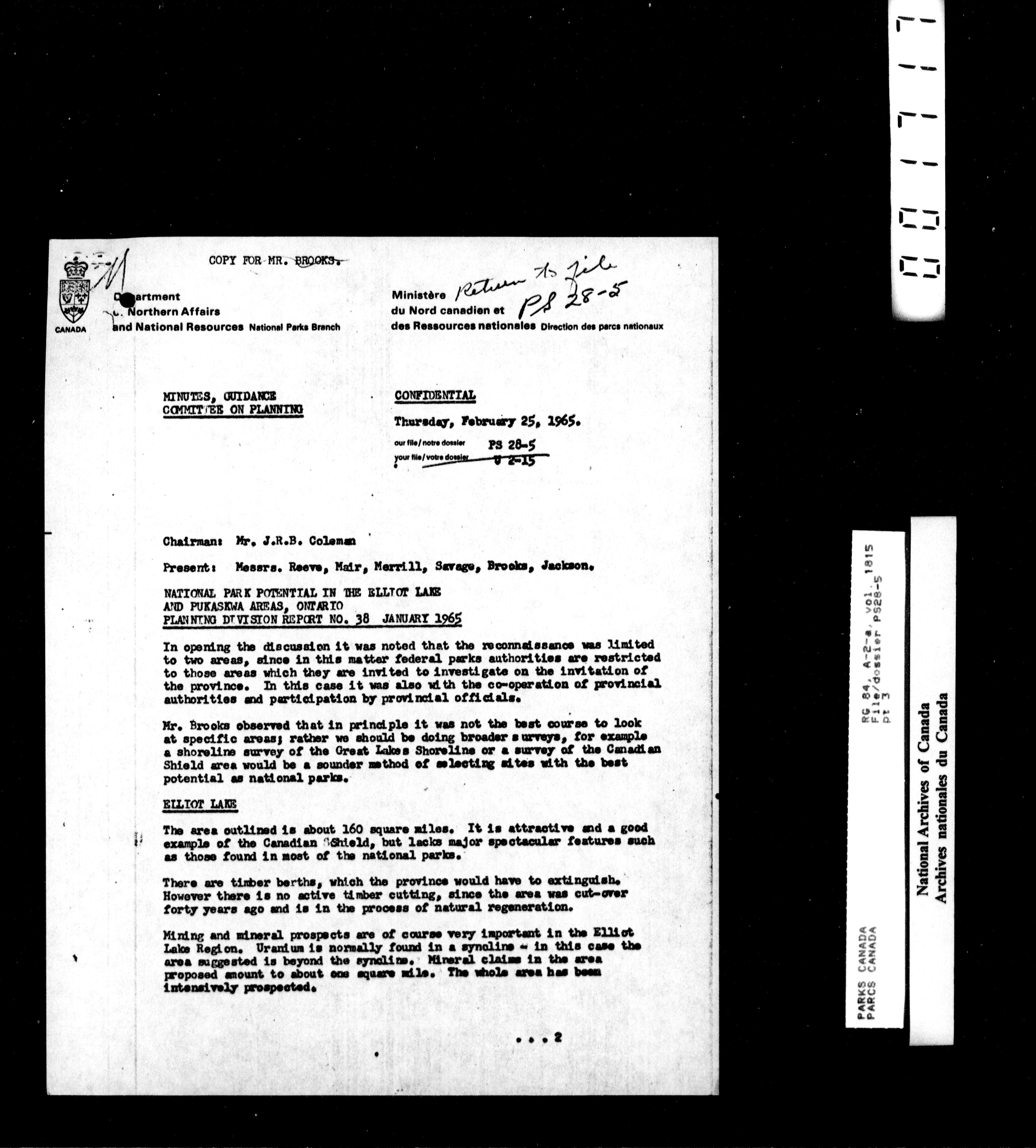 Department of Canadian Heritage, Canadian Parks Service : Park/subject classification system - 15484