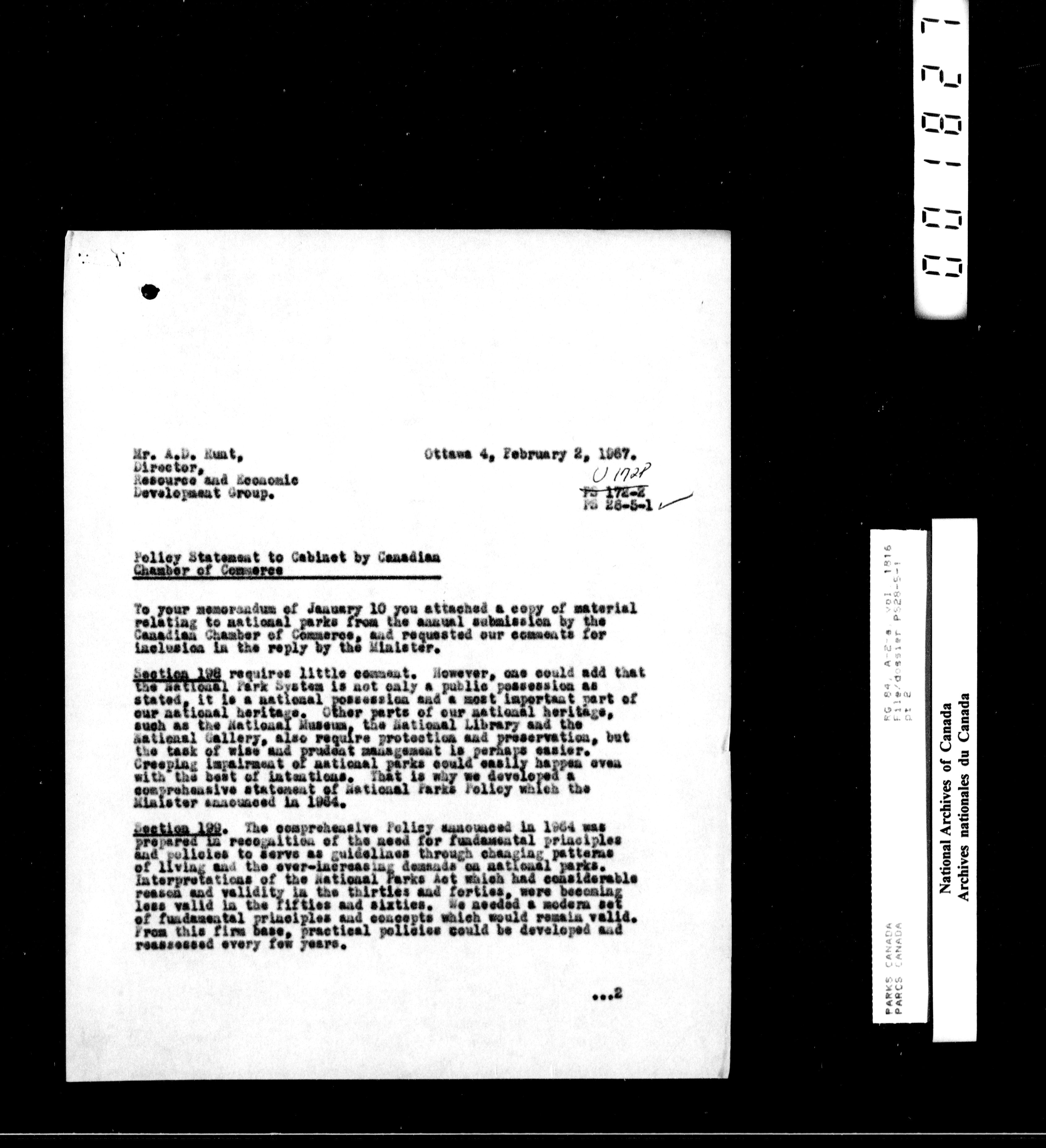 Department of Canadian Heritage, Canadian Parks Service : Park/subject classification system - 15485