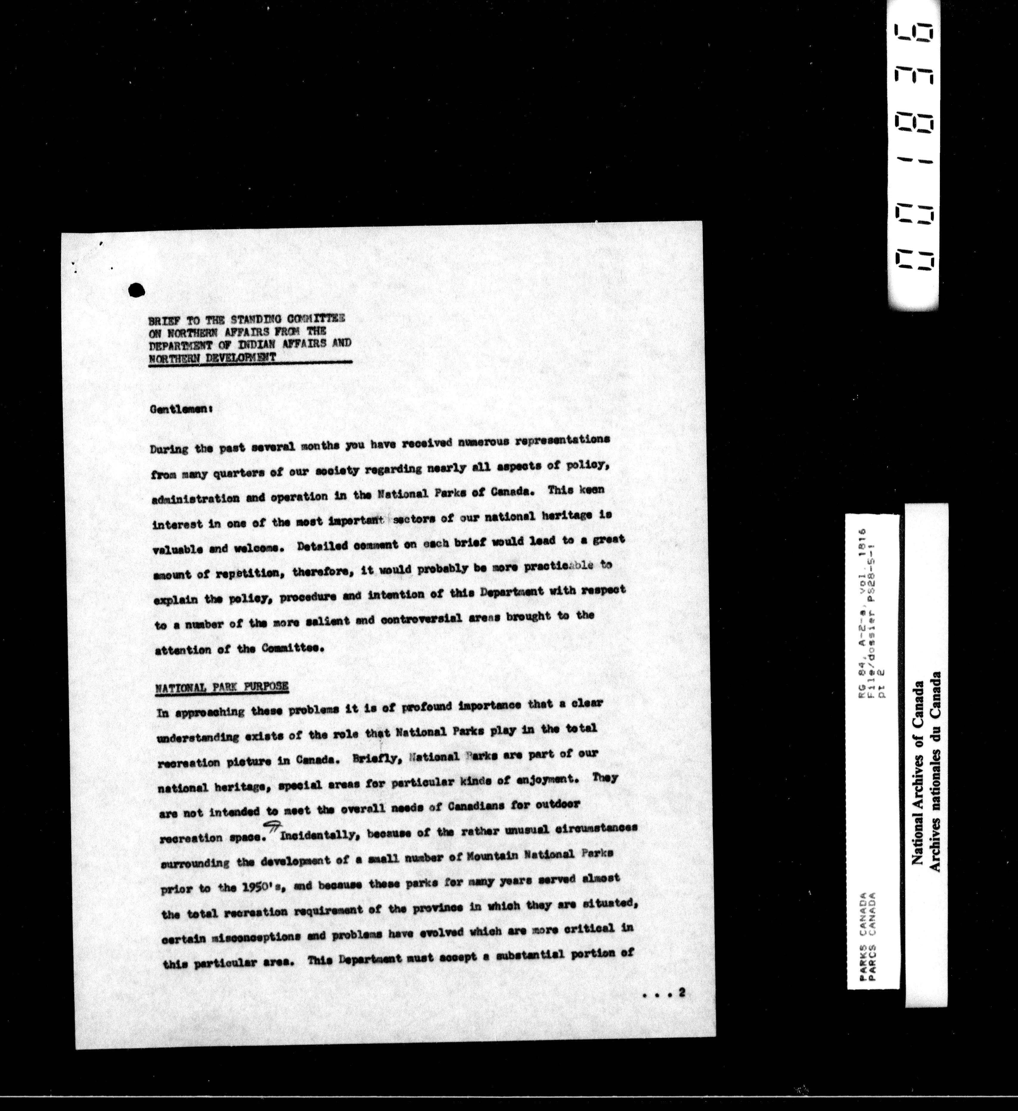 Department of Canadian Heritage, Canadian Parks Service : Park/subject classification system - 15485