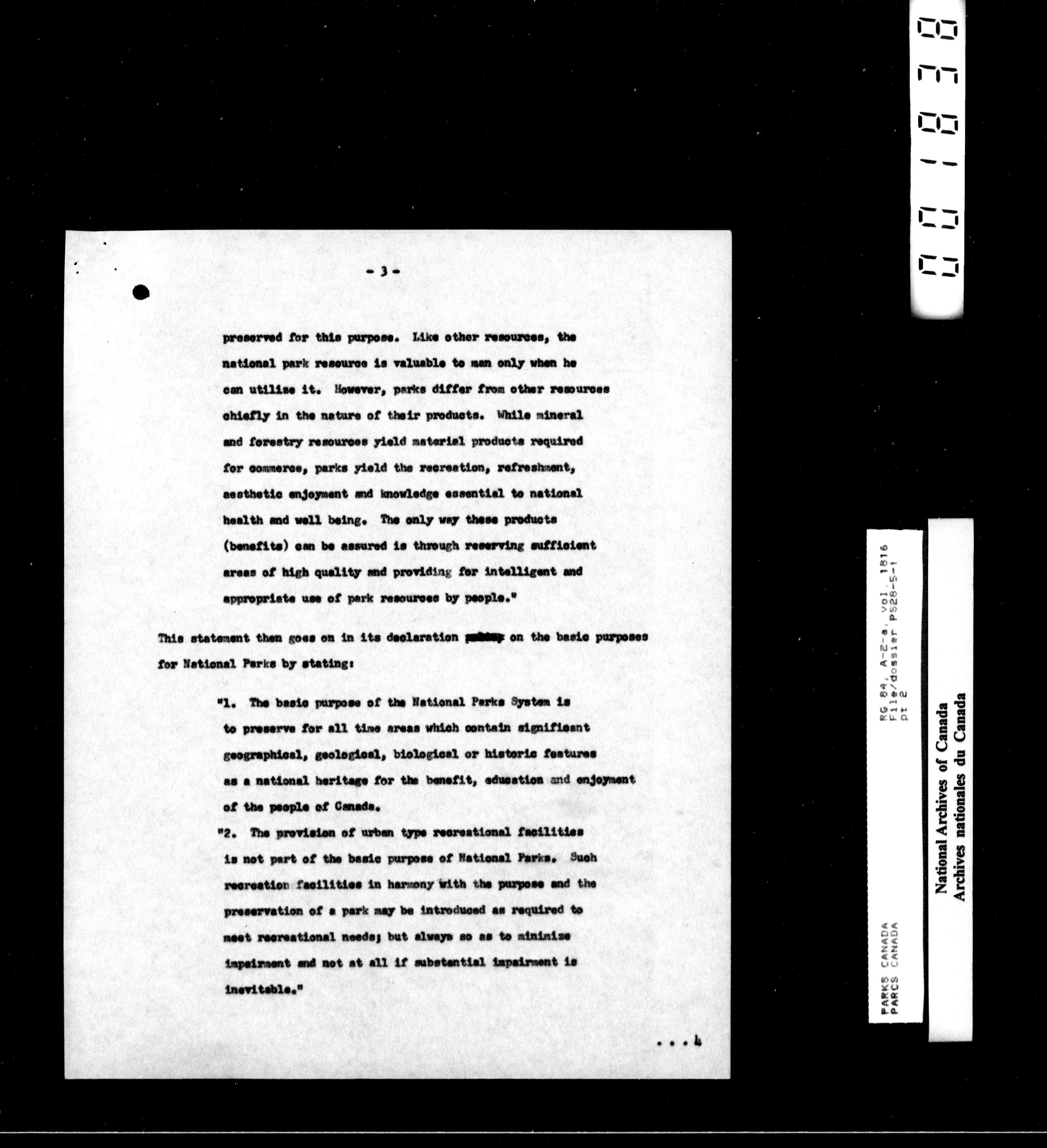 Department of Canadian Heritage, Canadian Parks Service : Park/subject classification system - 15485