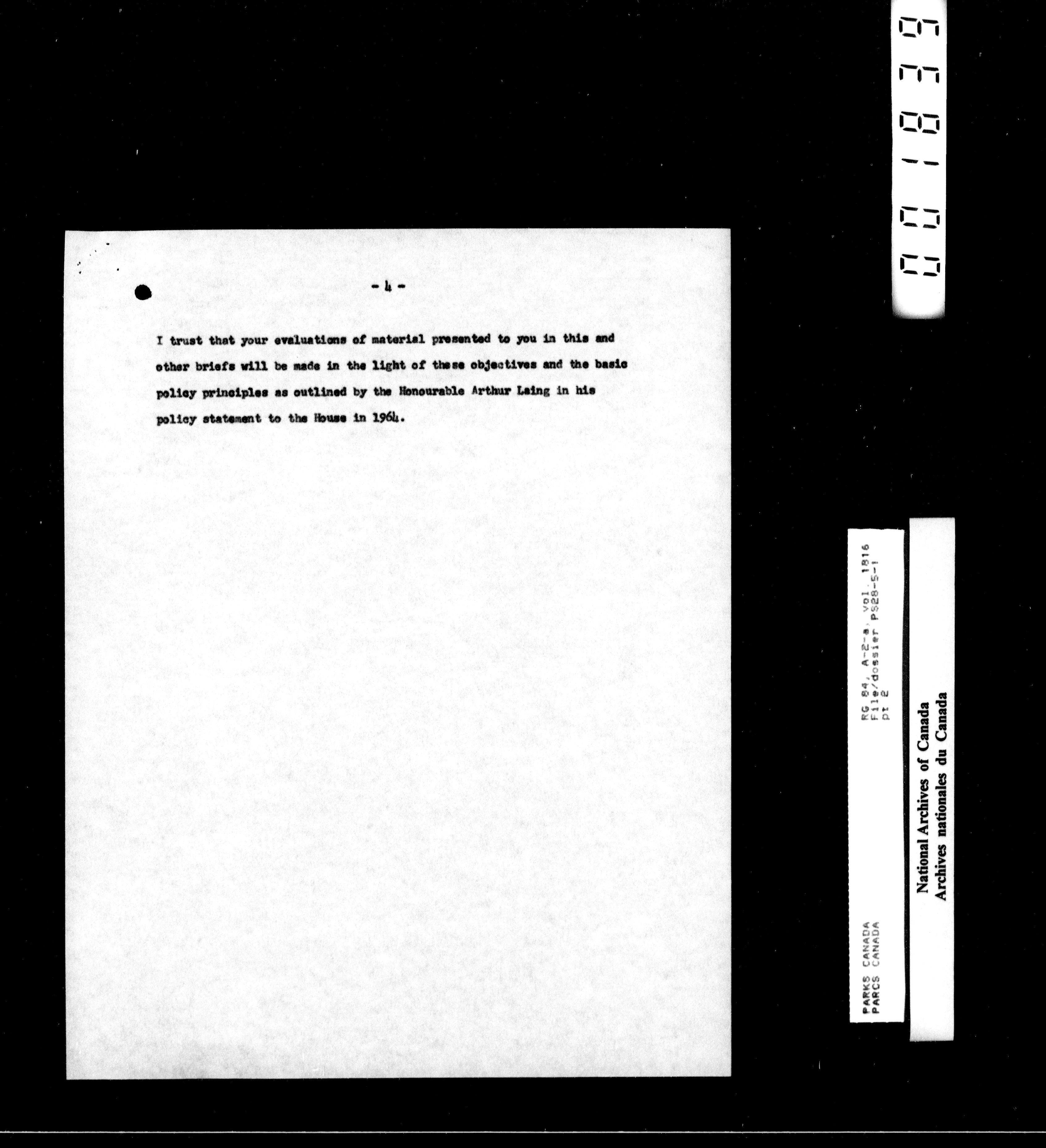 Department of Canadian Heritage, Canadian Parks Service : Park/subject classification system - 15485