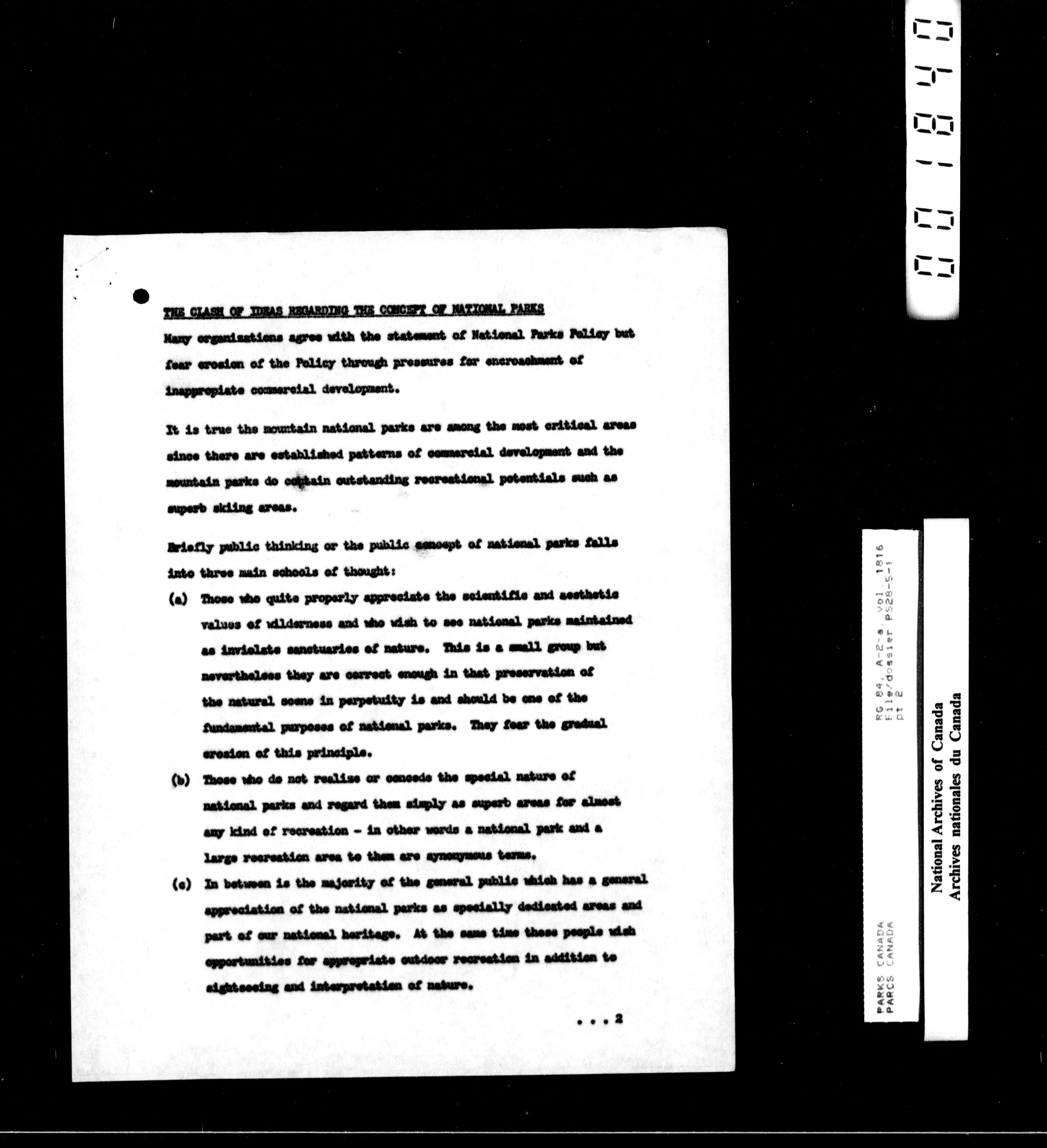 Department of Canadian Heritage, Canadian Parks Service : Park/subject classification system - 15485
