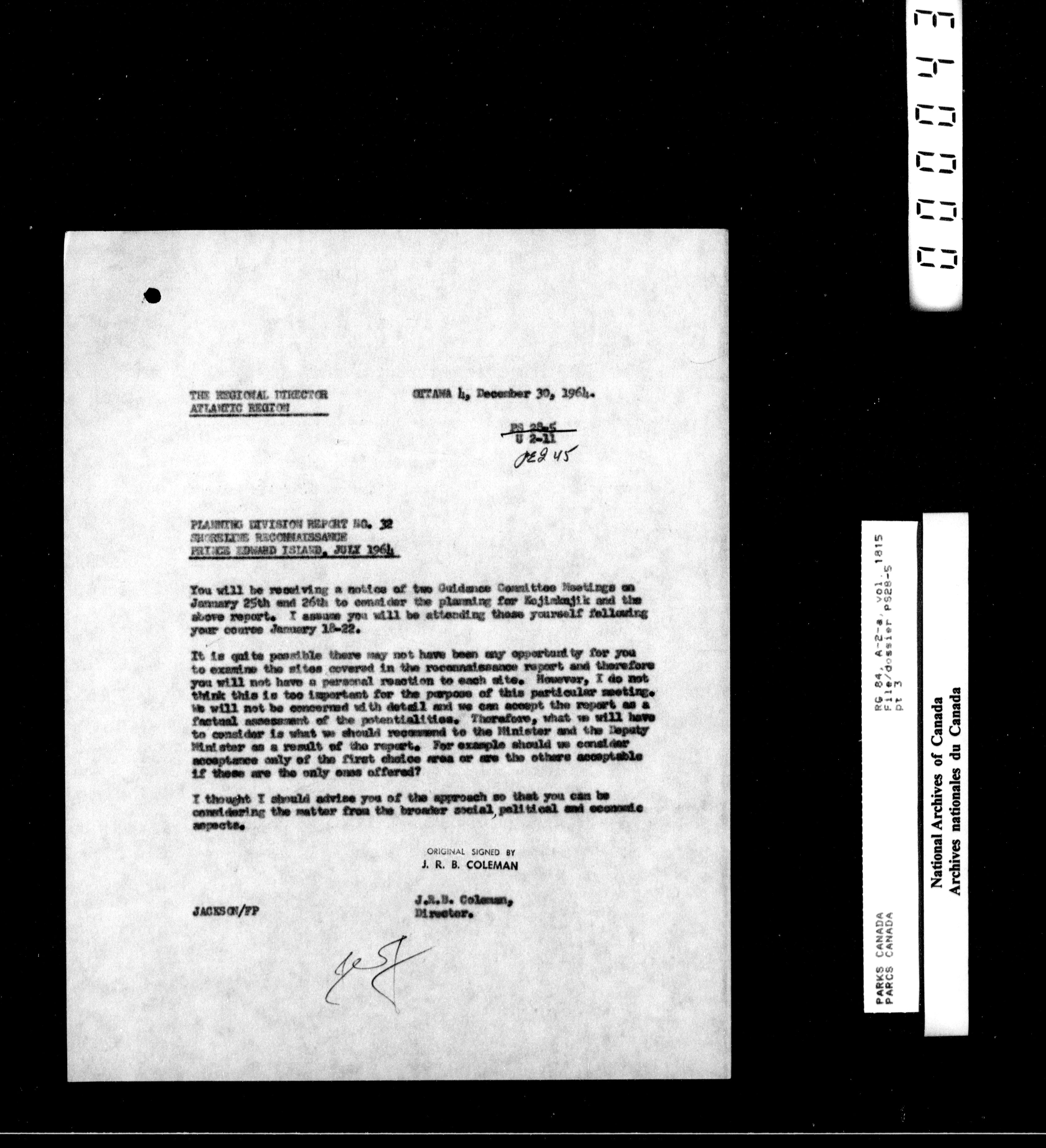 Department of Canadian Heritage, Canadian Parks Service : Park/subject classification system : T-15485