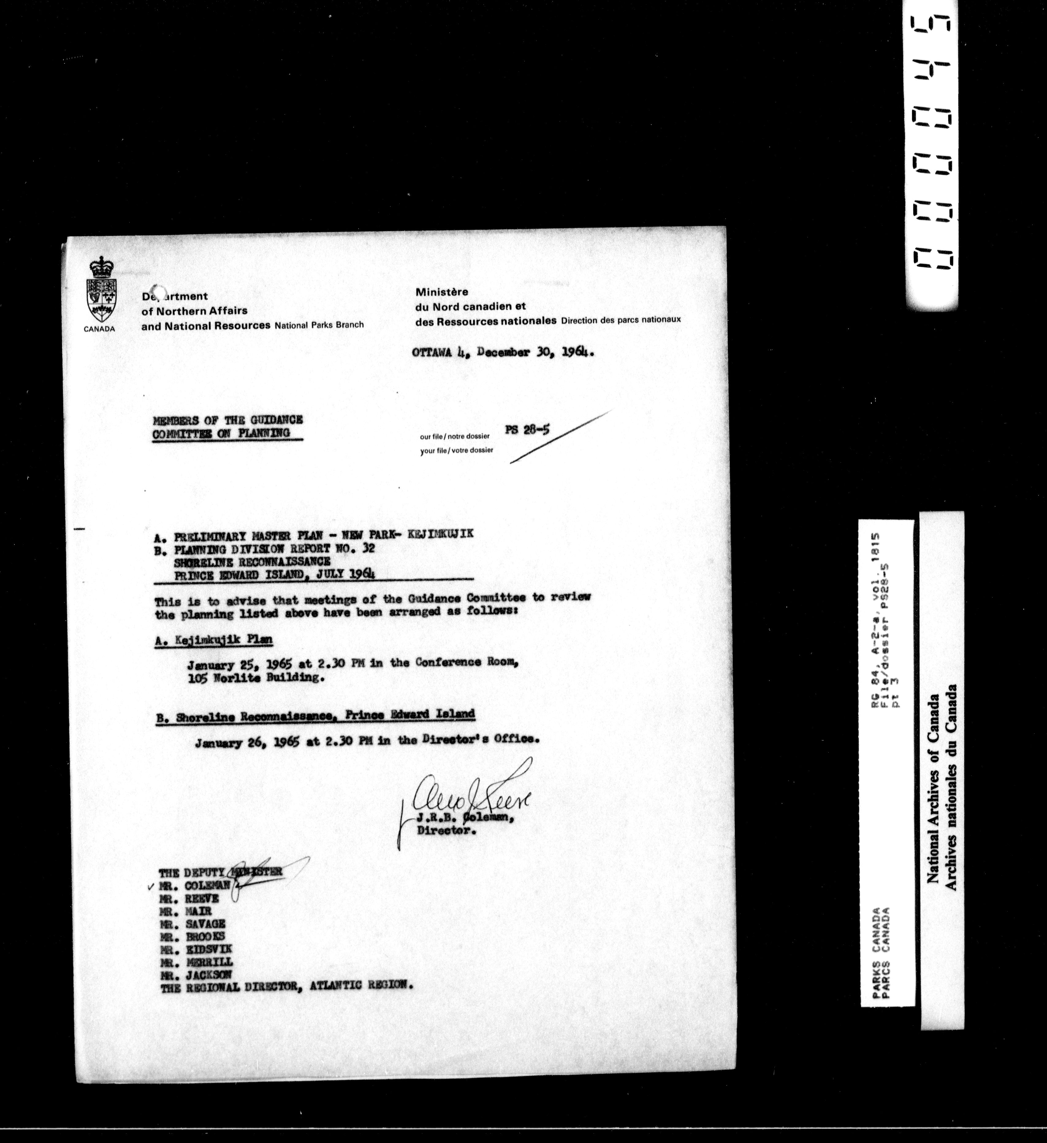 Department of Canadian Heritage, Canadian Parks Service : Park/subject classification system : T-15485