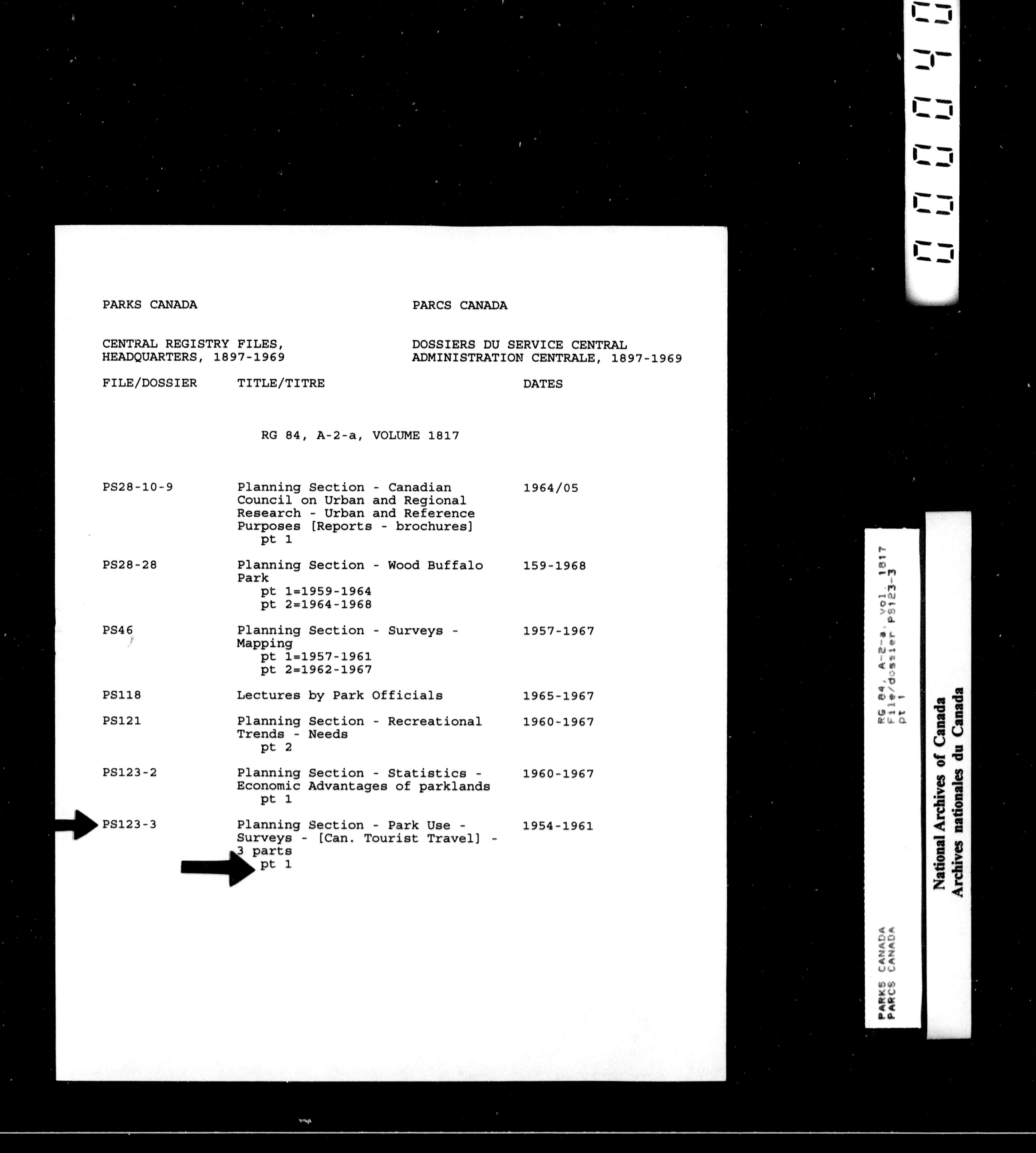 Department of Canadian Heritage, Canadian Parks Service : Park/subject classification system - 15487