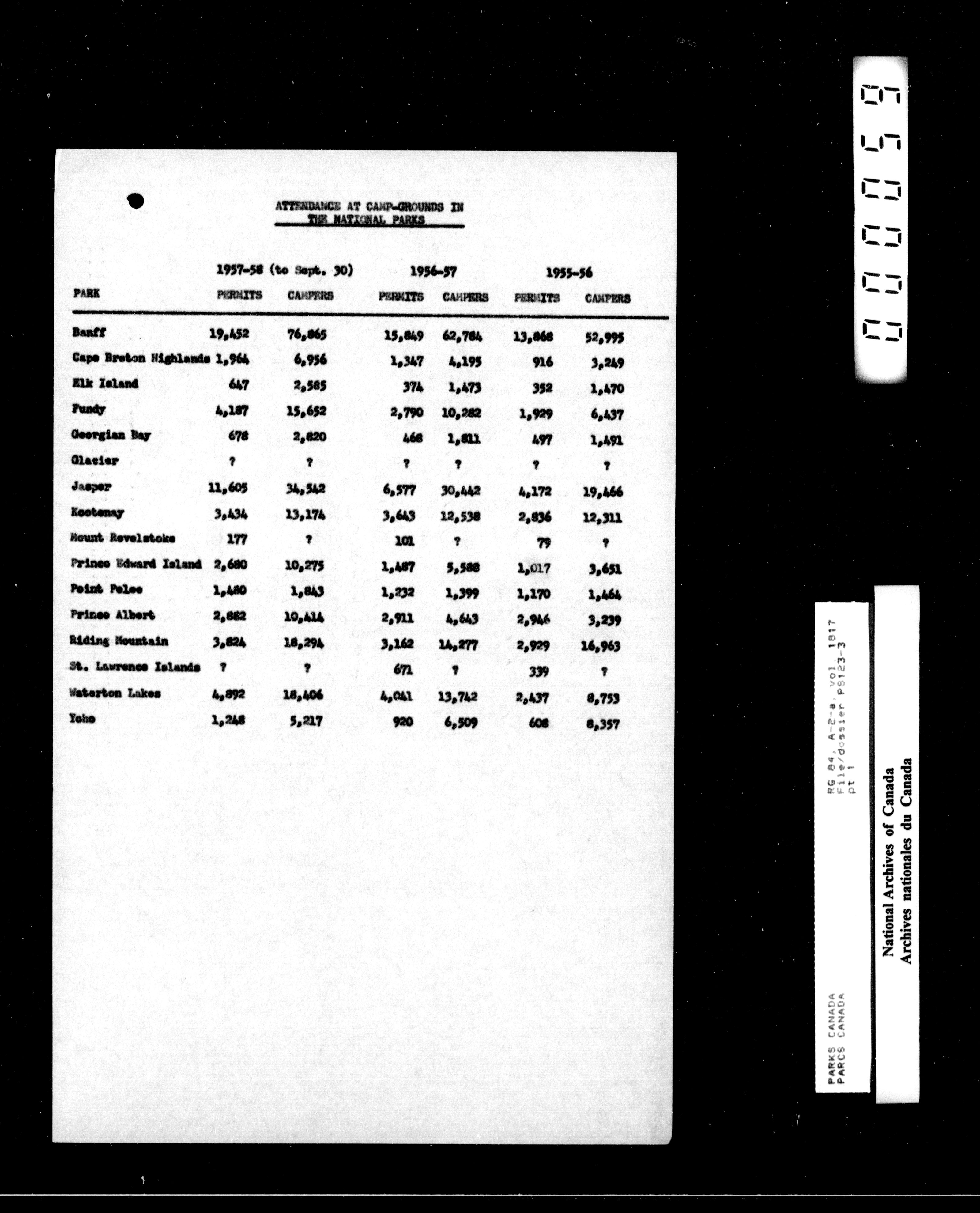 Department of Canadian Heritage, Canadian Parks Service : Park/subject classification system - 15487