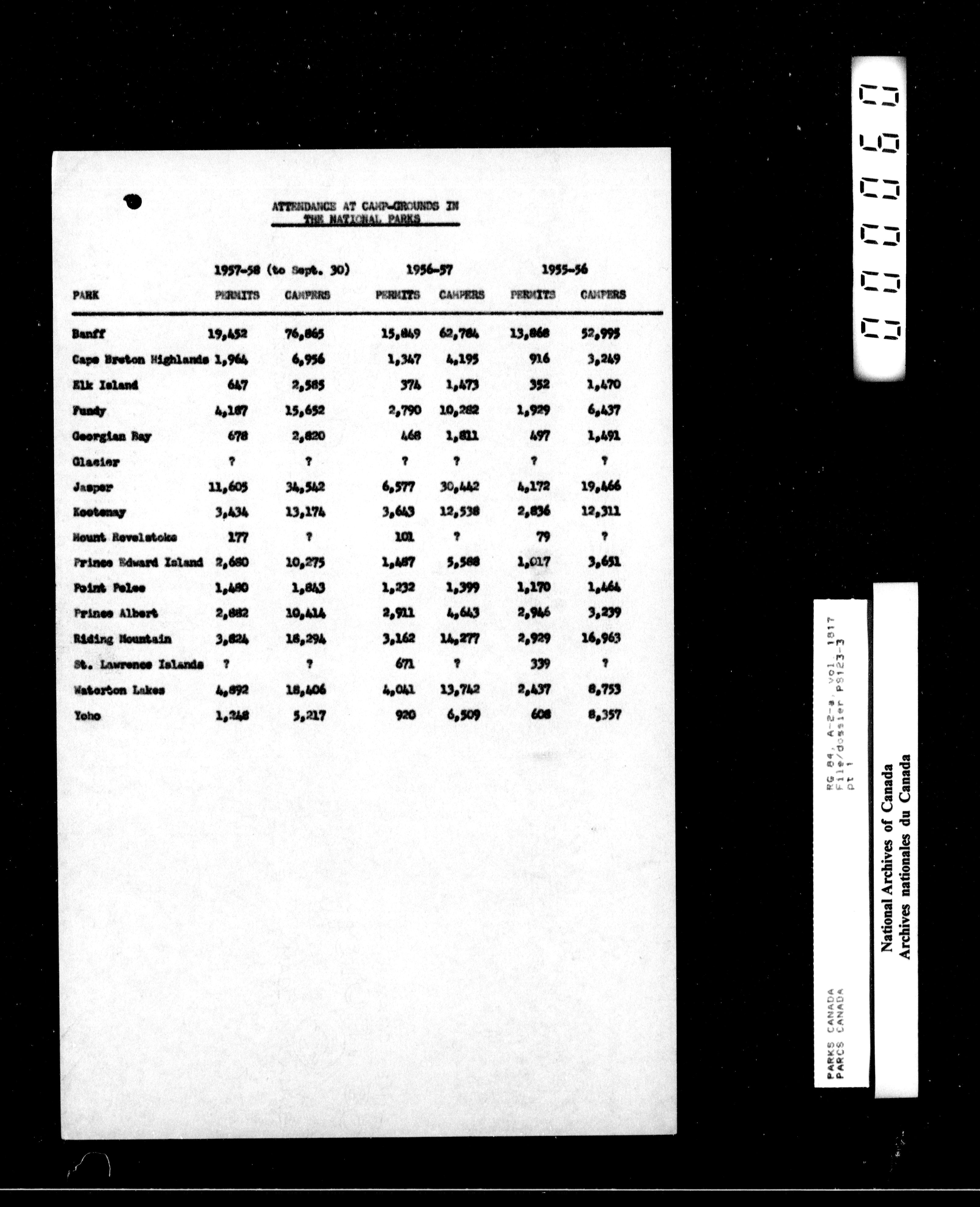 Department of Canadian Heritage, Canadian Parks Service : Park/subject classification system - 15487