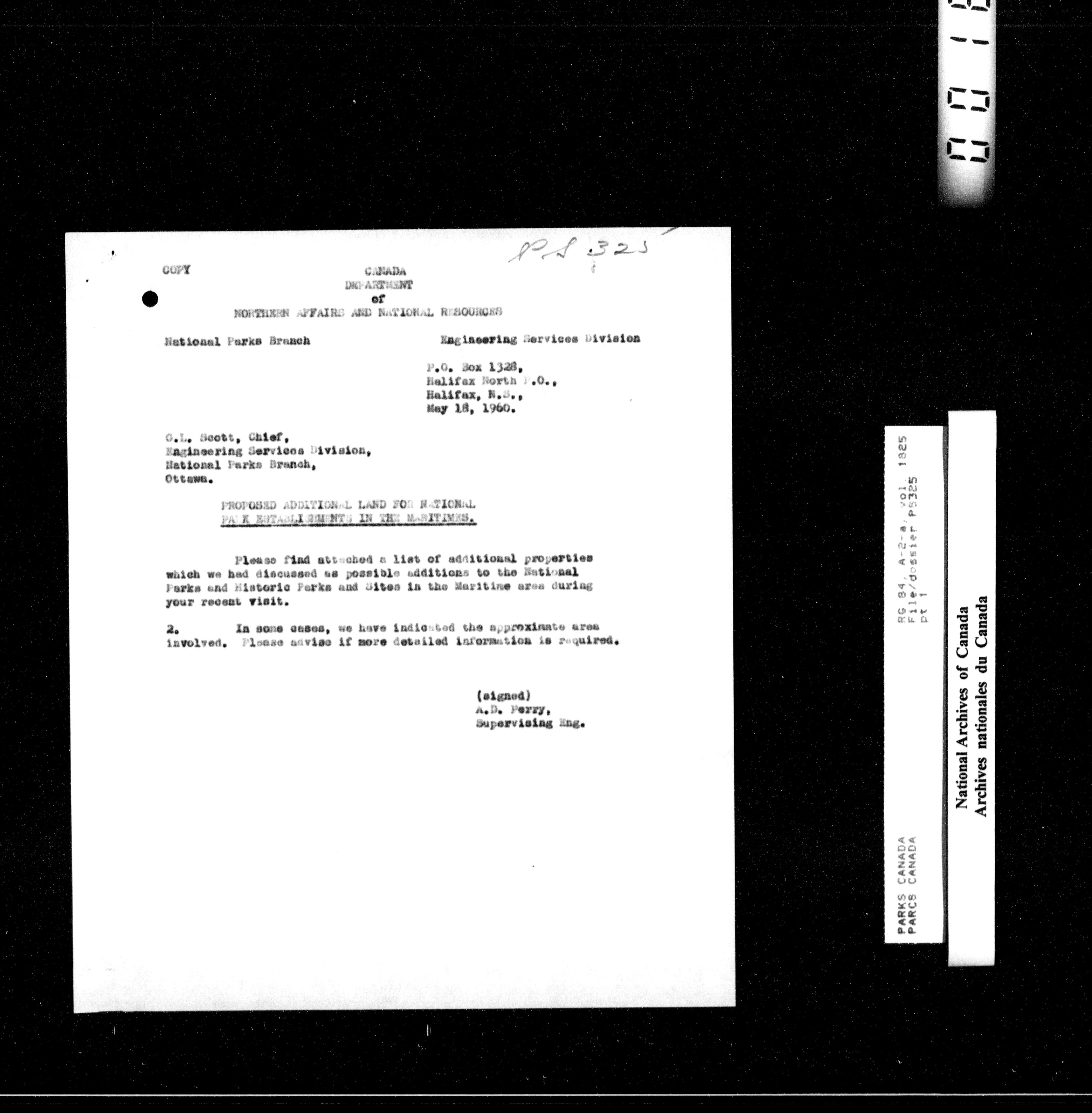 Department of Canadian Heritage, Canadian Parks Service : Park/subject classification system : T-15493