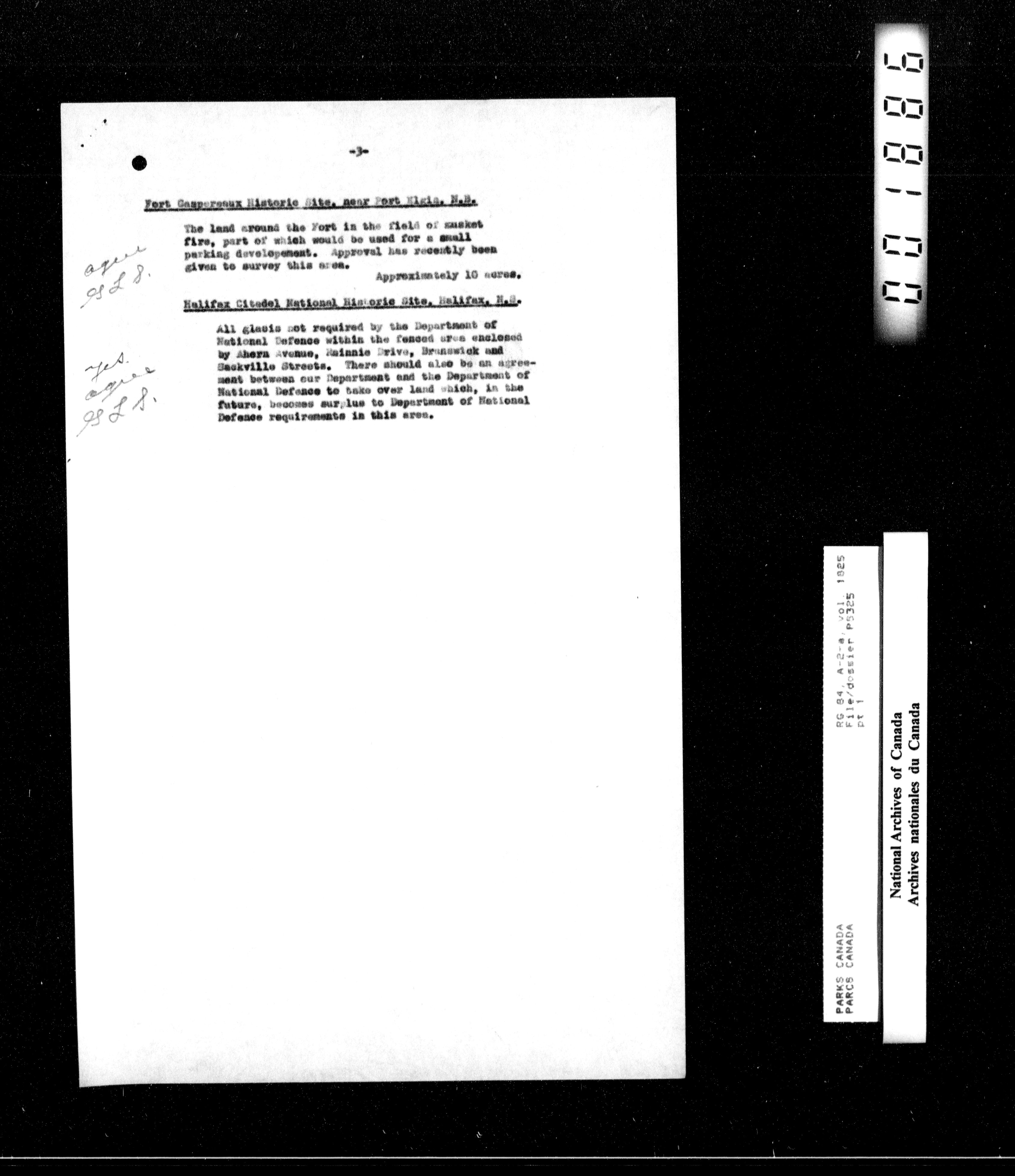 Department of Canadian Heritage, Canadian Parks Service : Park/subject classification system : T-15493