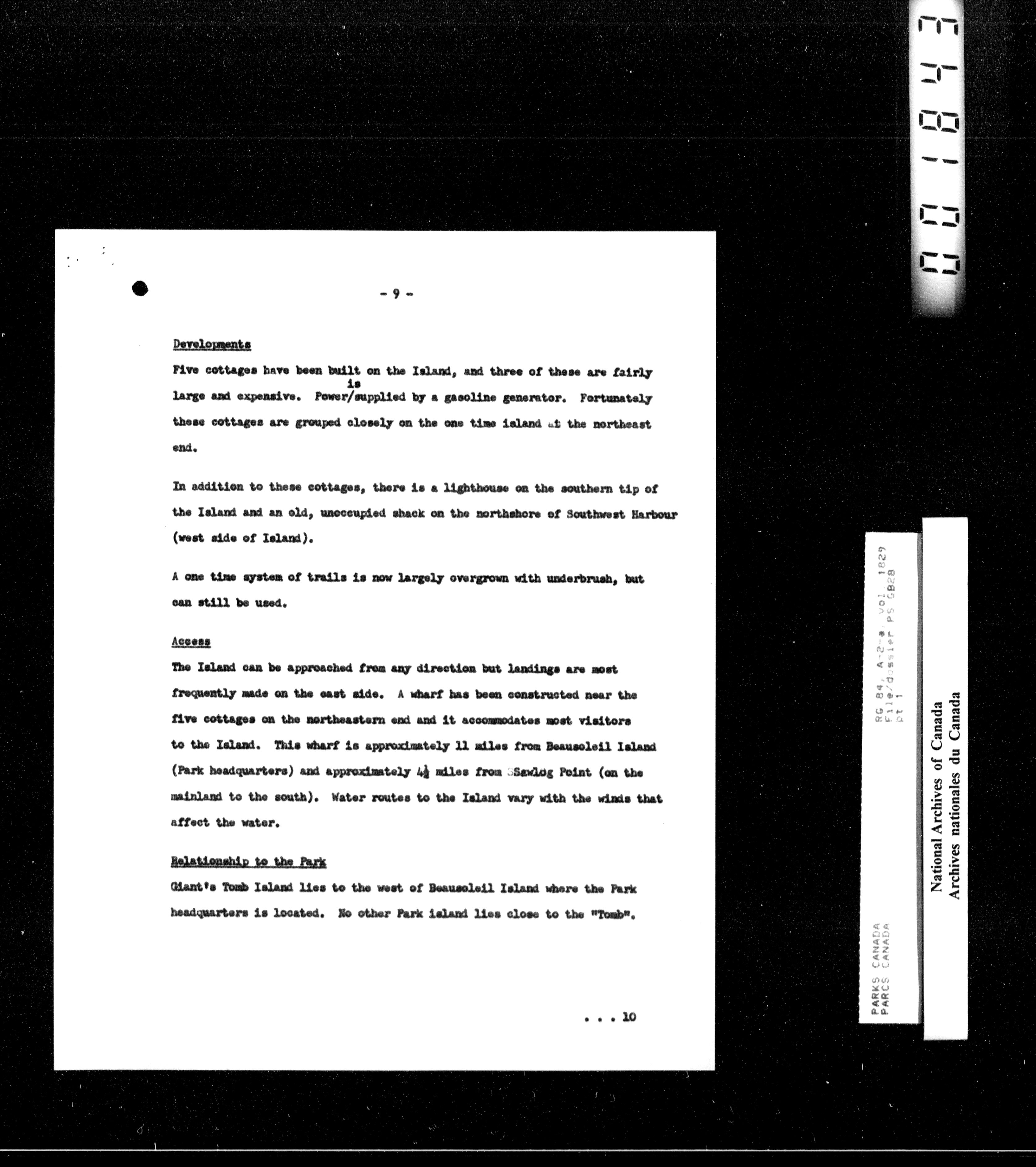 Department of Canadian Heritage, Canadian Parks Service : Park/subject classification system - 15496