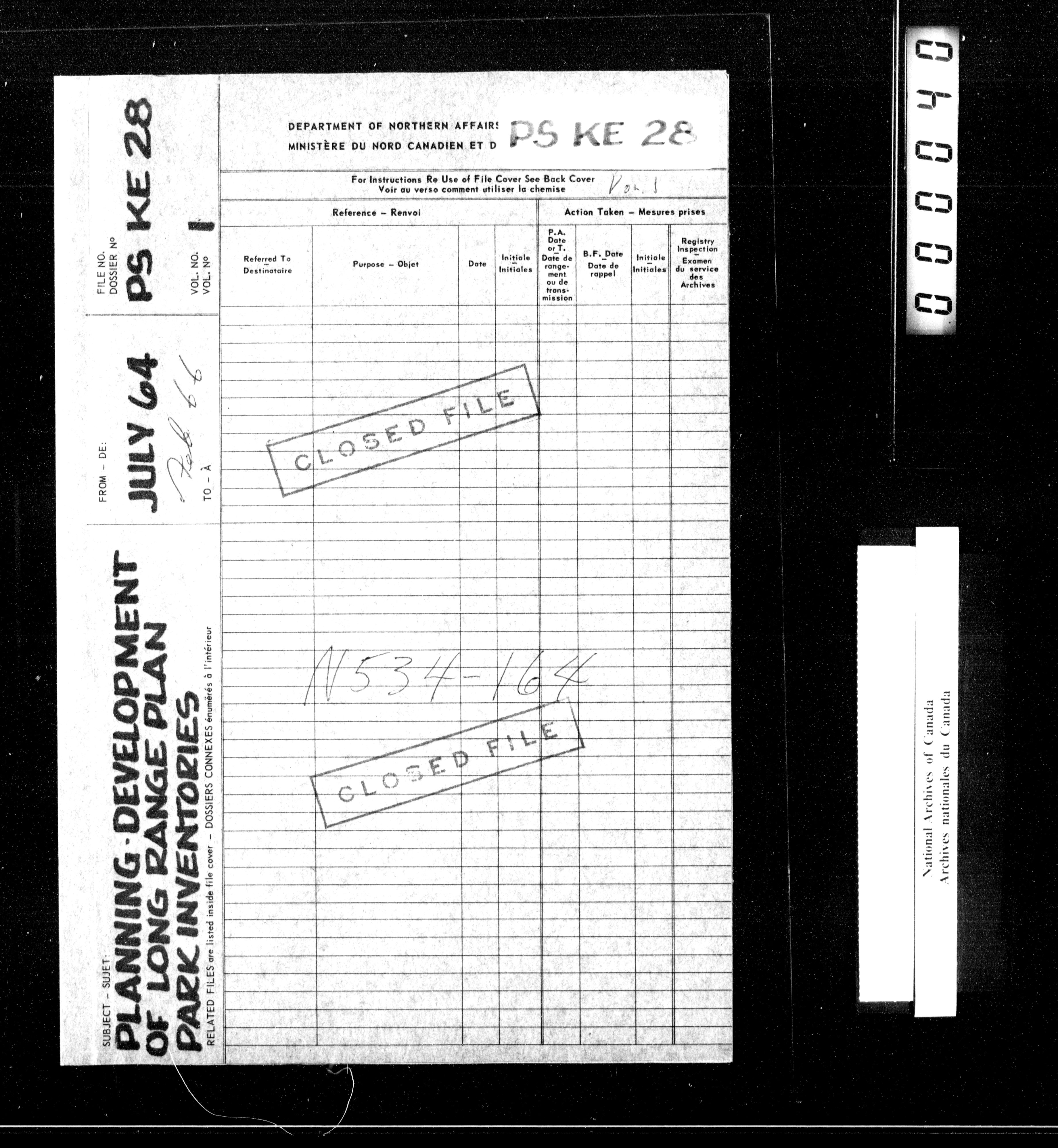 Department of Canadian Heritage, Canadian Parks Service : Park/subject classification system - 15498