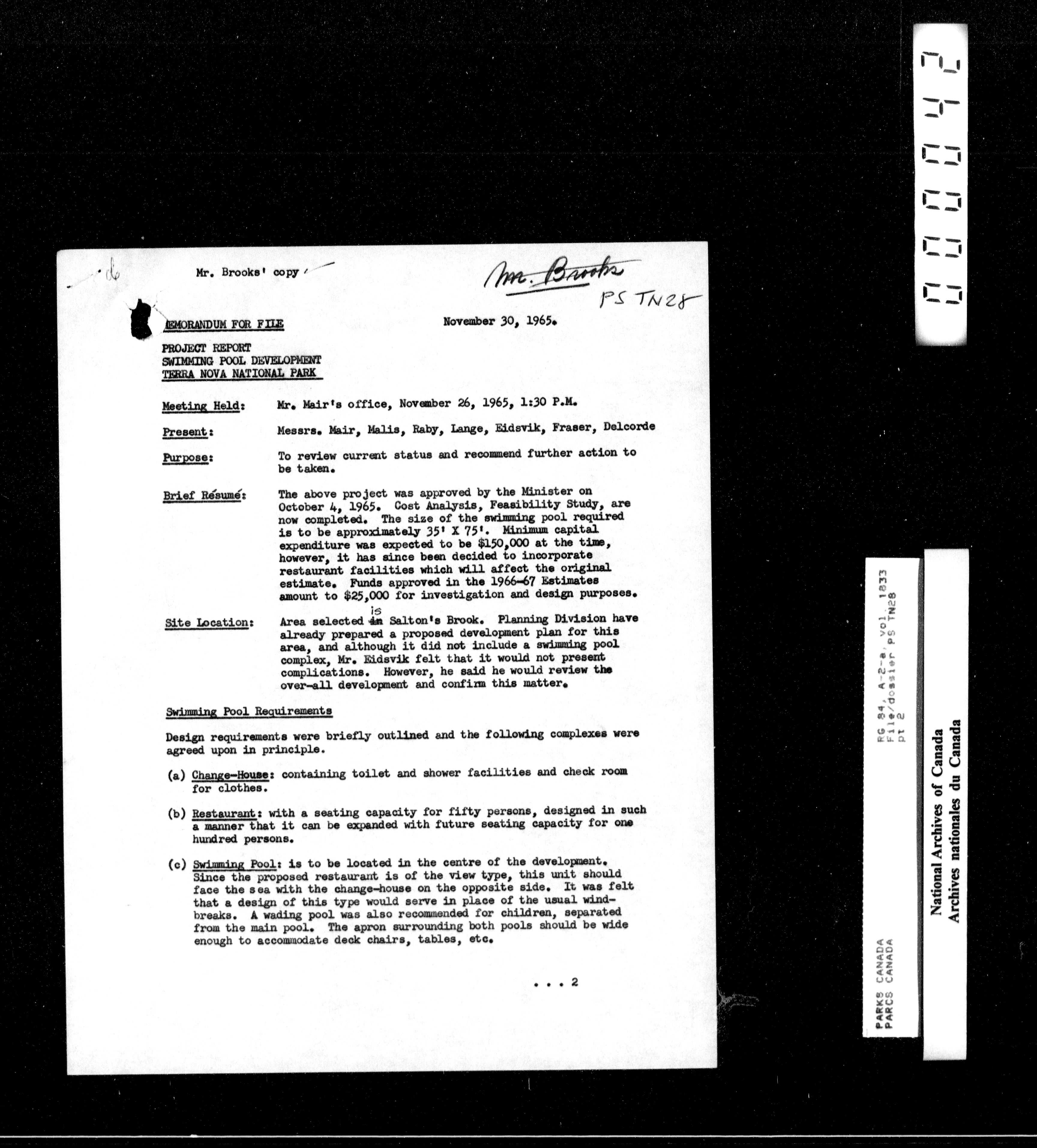 Department of Canadian Heritage, Canadian Parks Service : Park/subject classification system - 15501