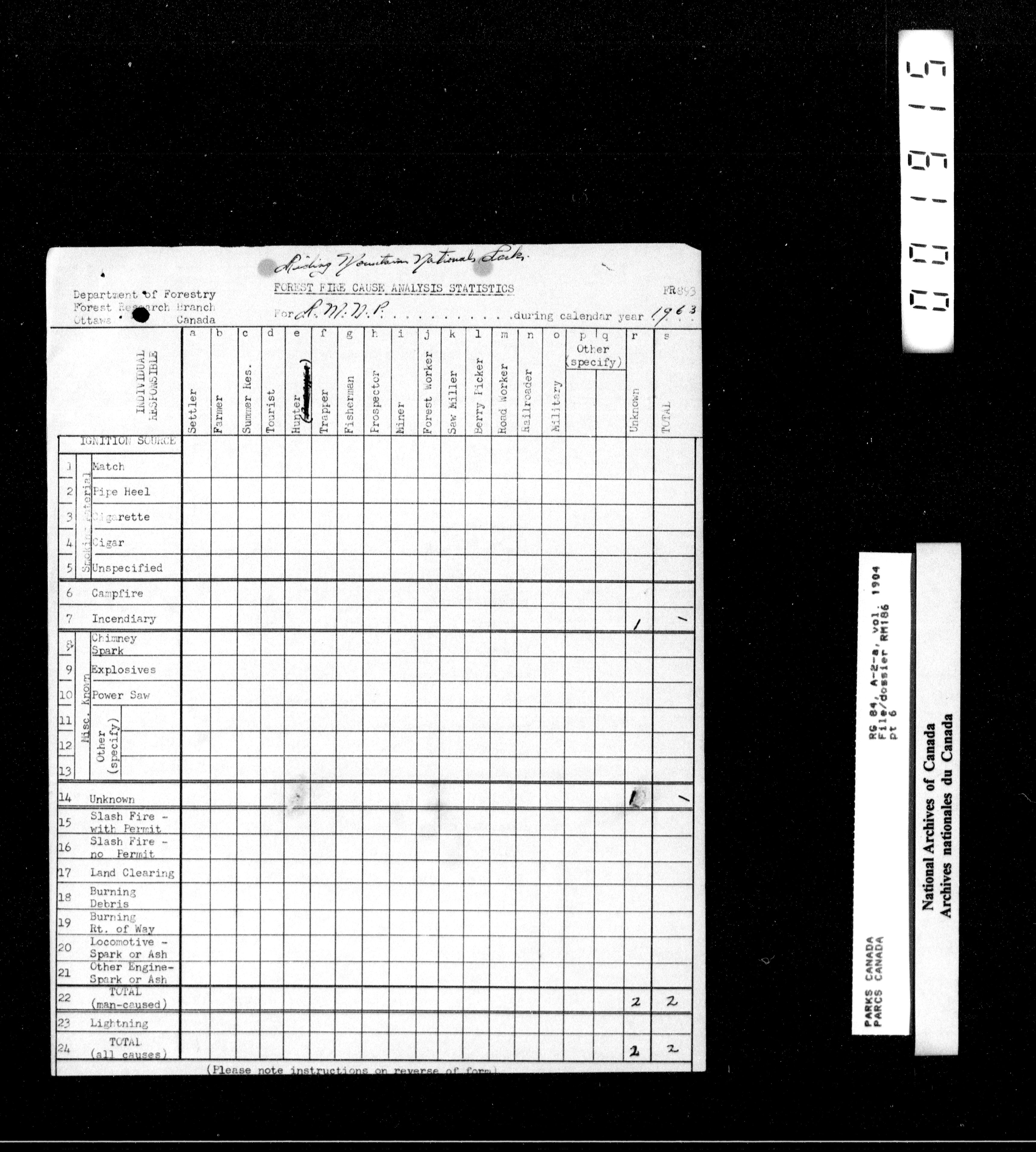 Department of Canadian Heritage, Canadian Parks Service : Park/subject classification system - 15504