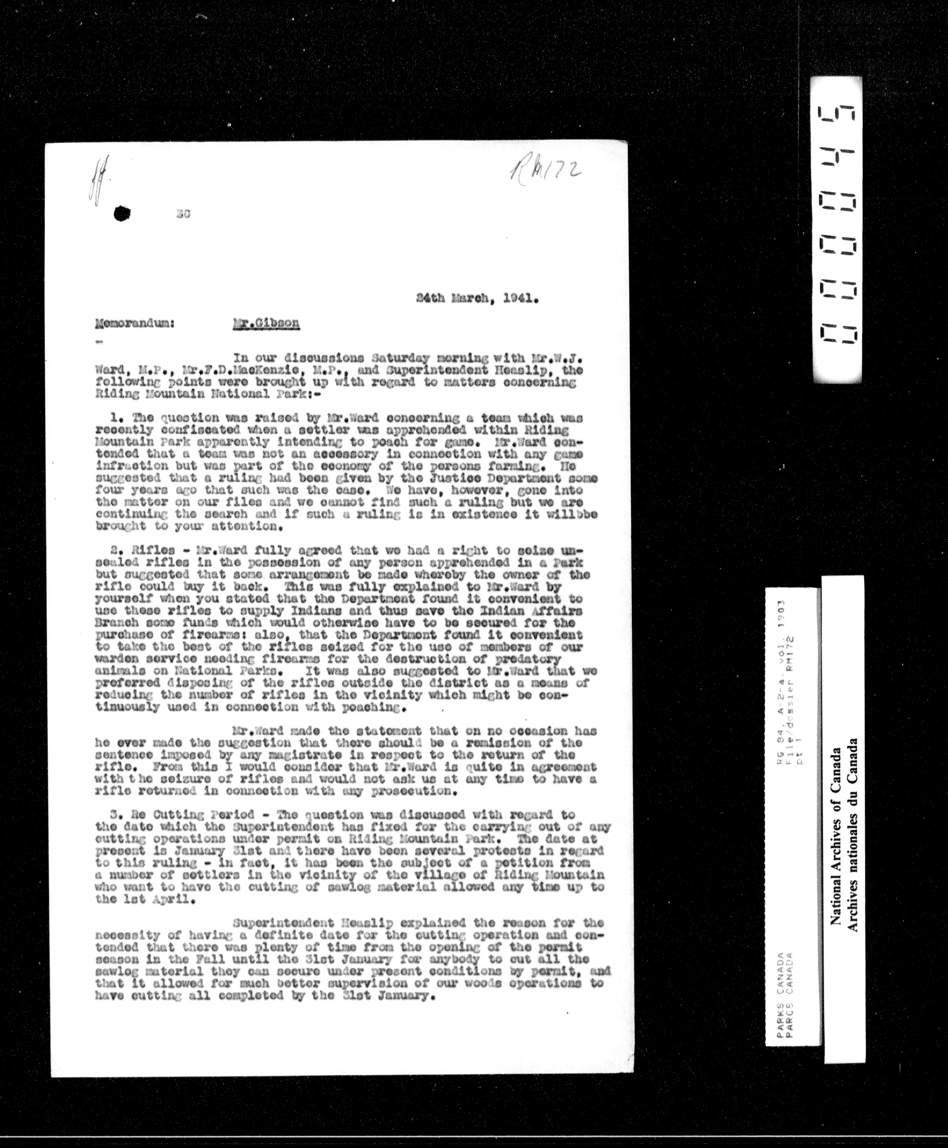 Department of Canadian Heritage, Canadian Parks Service : Park/subject classification system - 15504