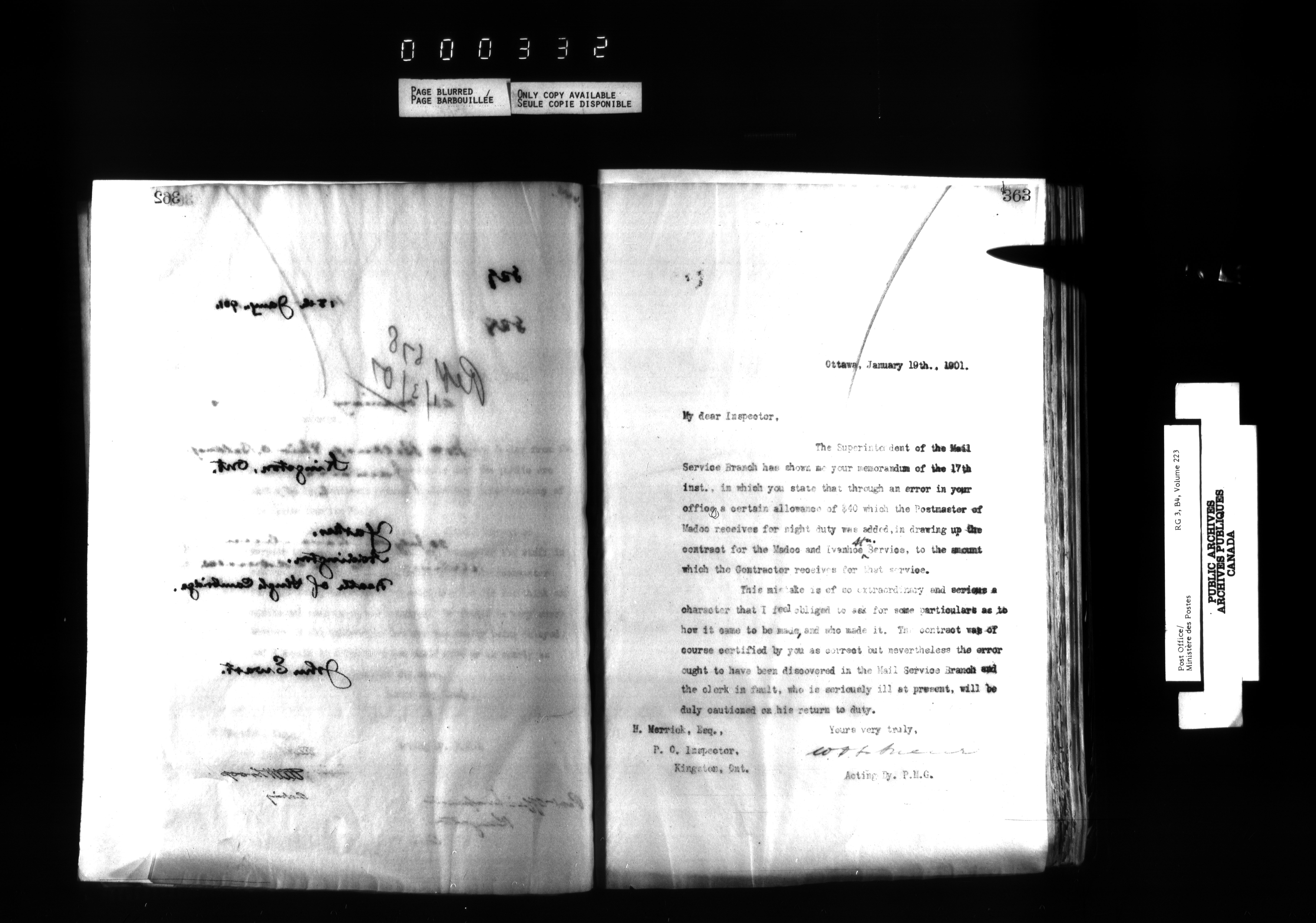 Deputy Postmaster General : correspondence addressed to the Post Office Inspectors, 1851-1902 : T-1551