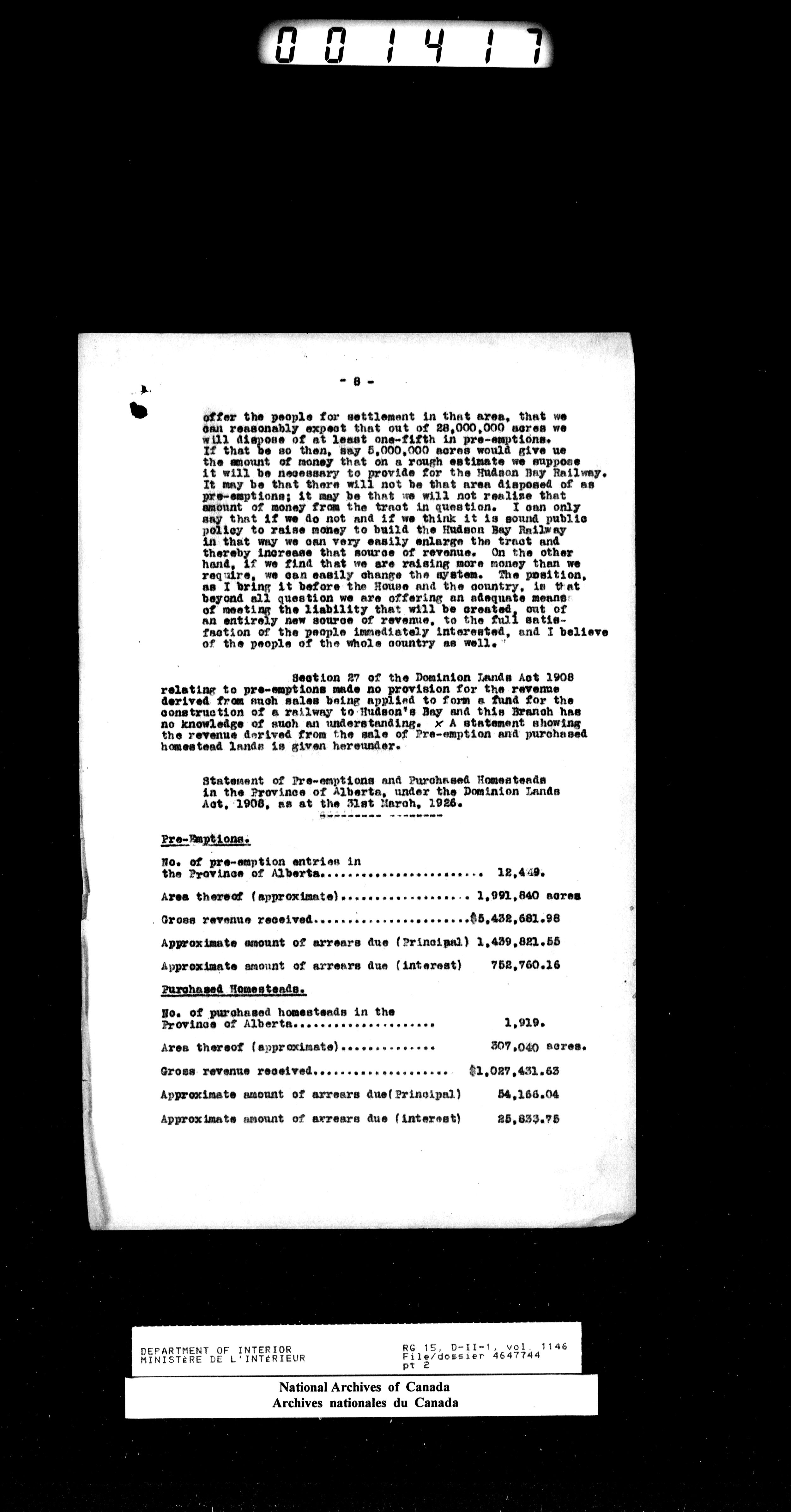 Central registry subject files created by the Dominion Lands Branch - 15514