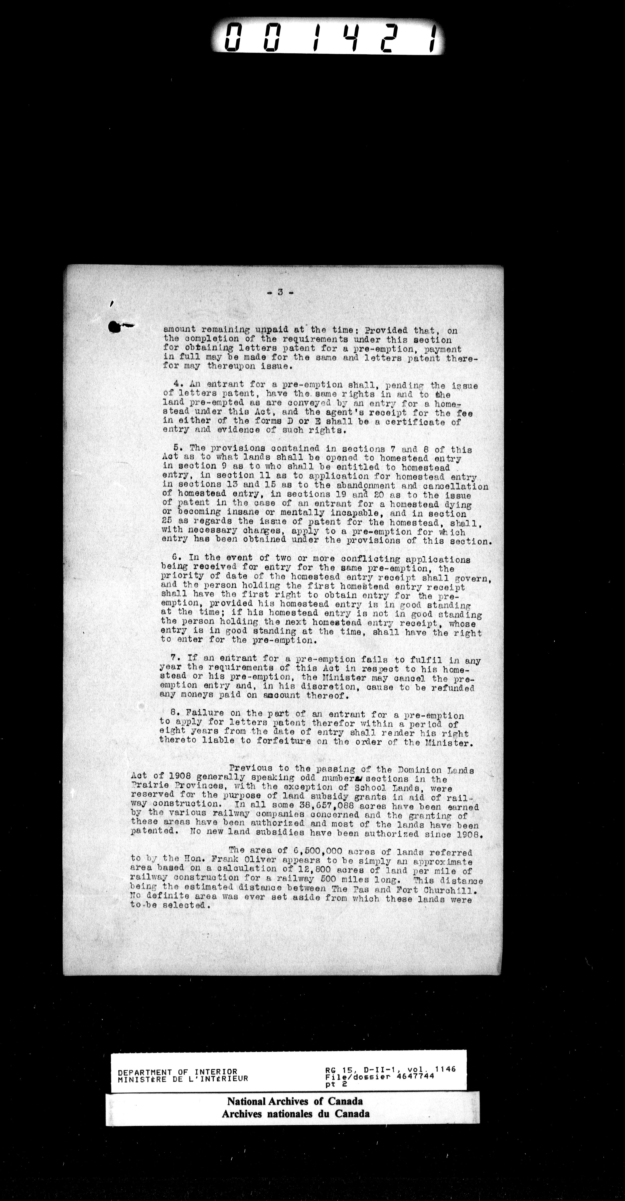 Central registry subject files created by the Dominion Lands Branch - 15514