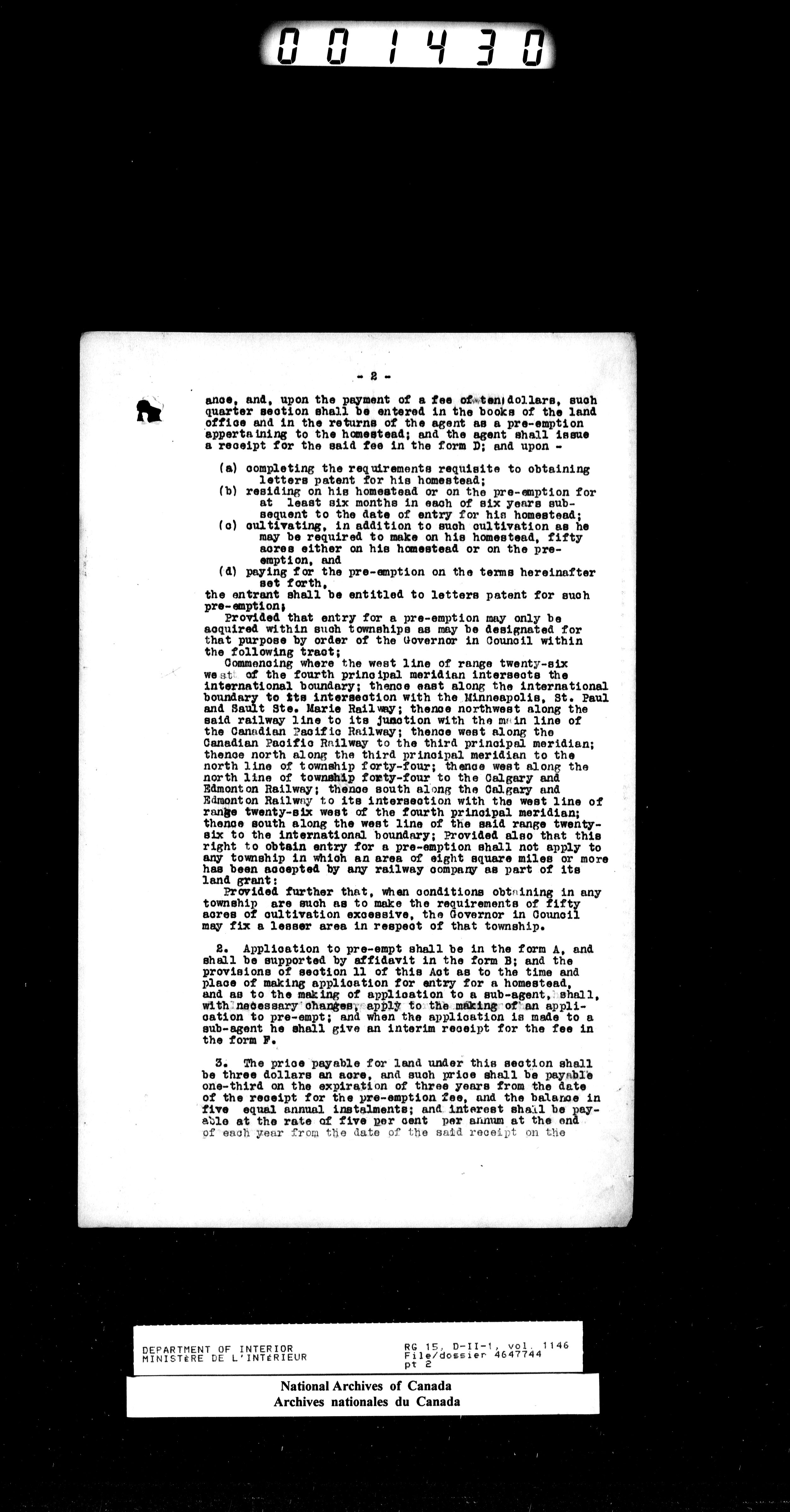 Central registry subject files created by the Dominion Lands Branch - 15514