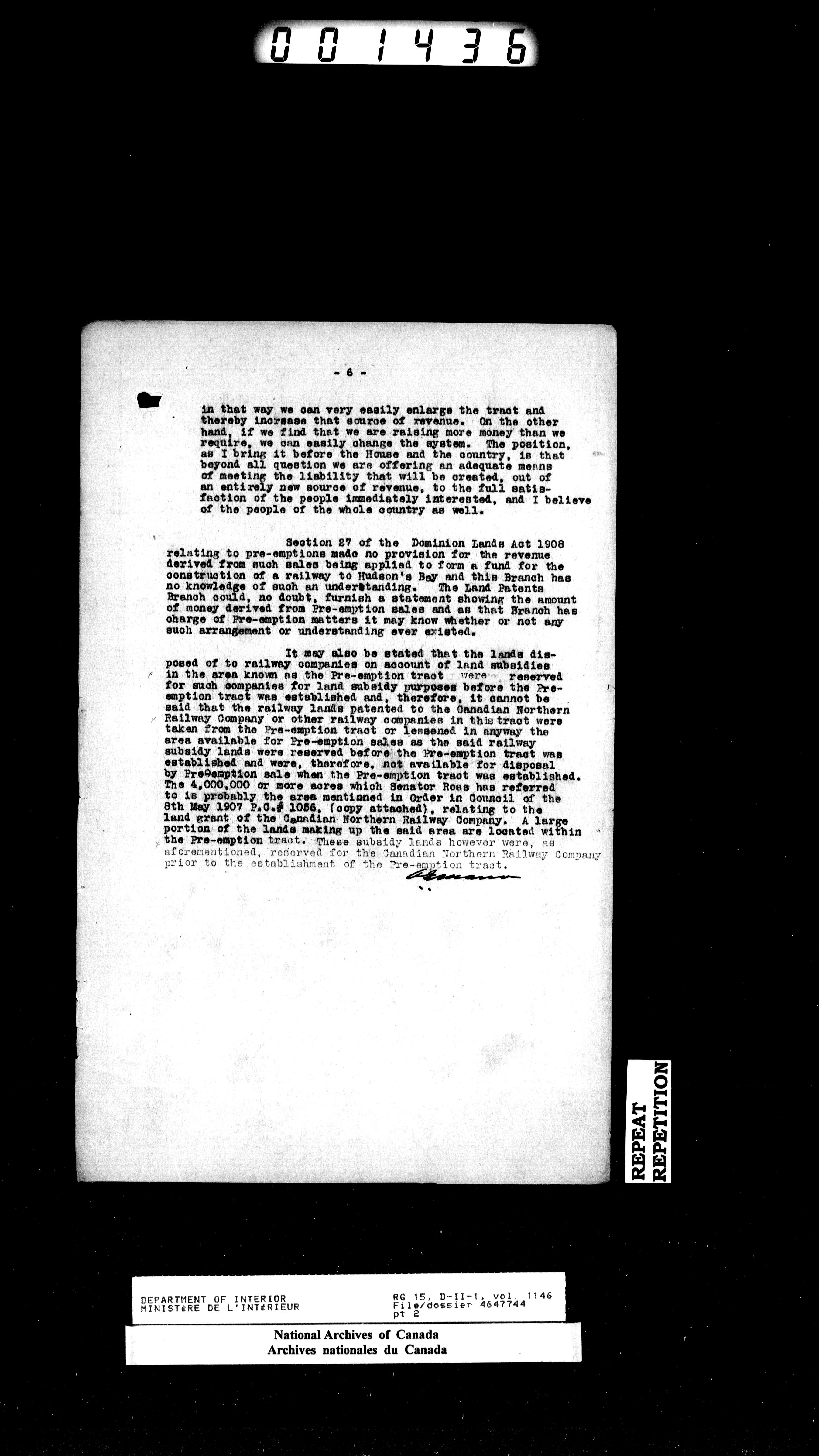 Central registry subject files created by the Dominion Lands Branch - 15514