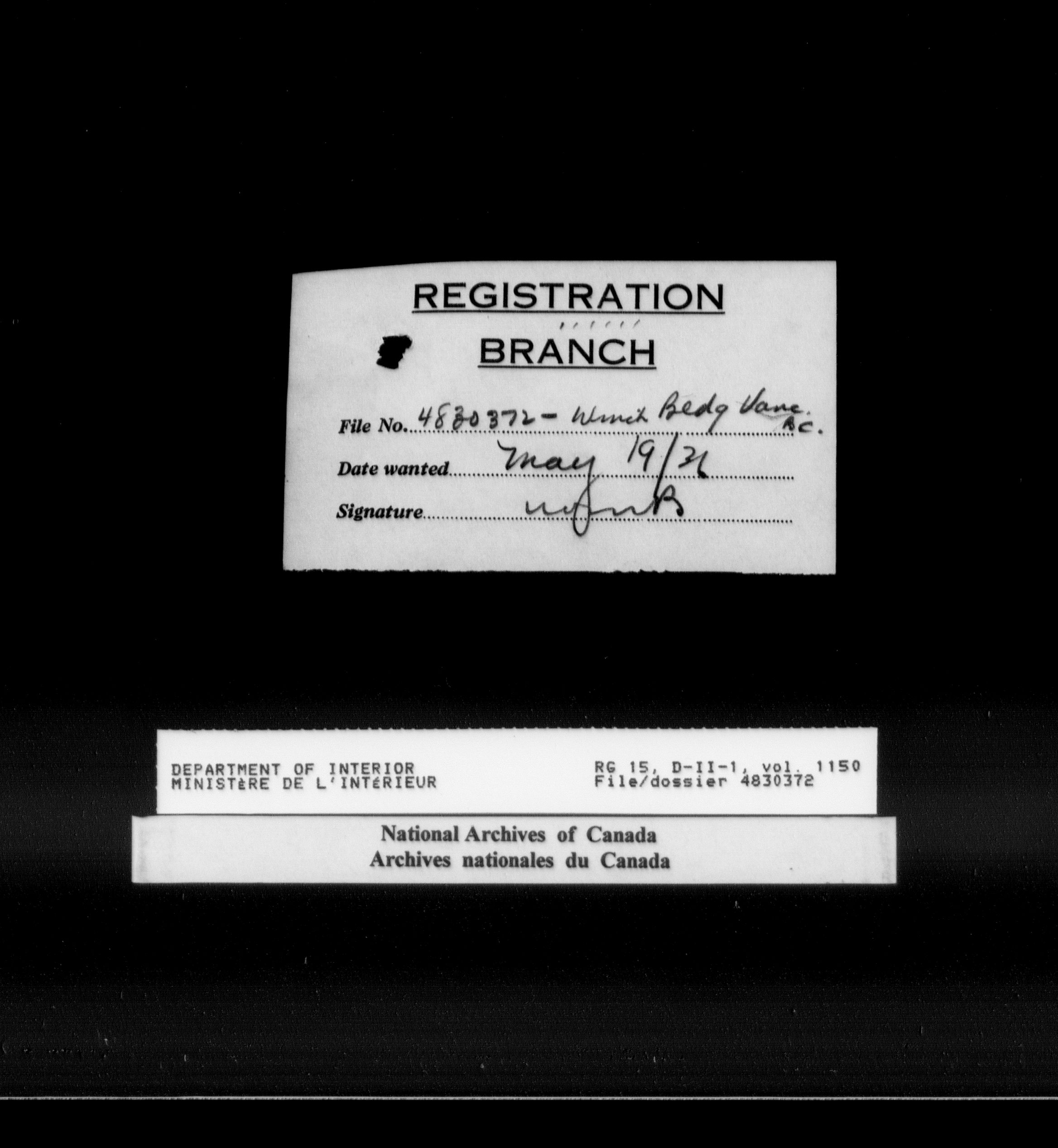 Central registry subject files created by the Dominion Lands Branch - 15518