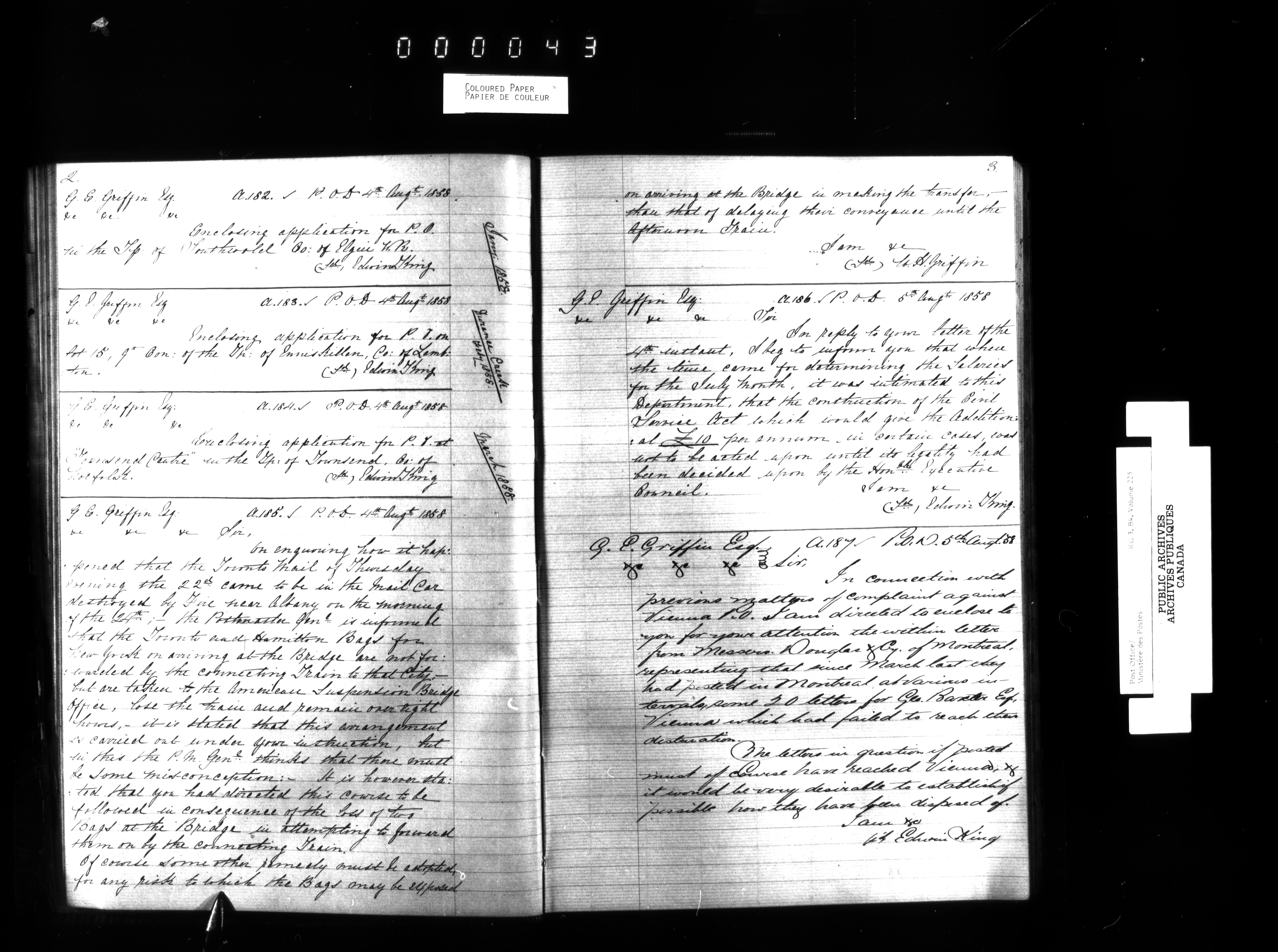 Deputy Postmaster General : correspondence addressed to the Post Office Inspectors, 1851-1902 : T-1552