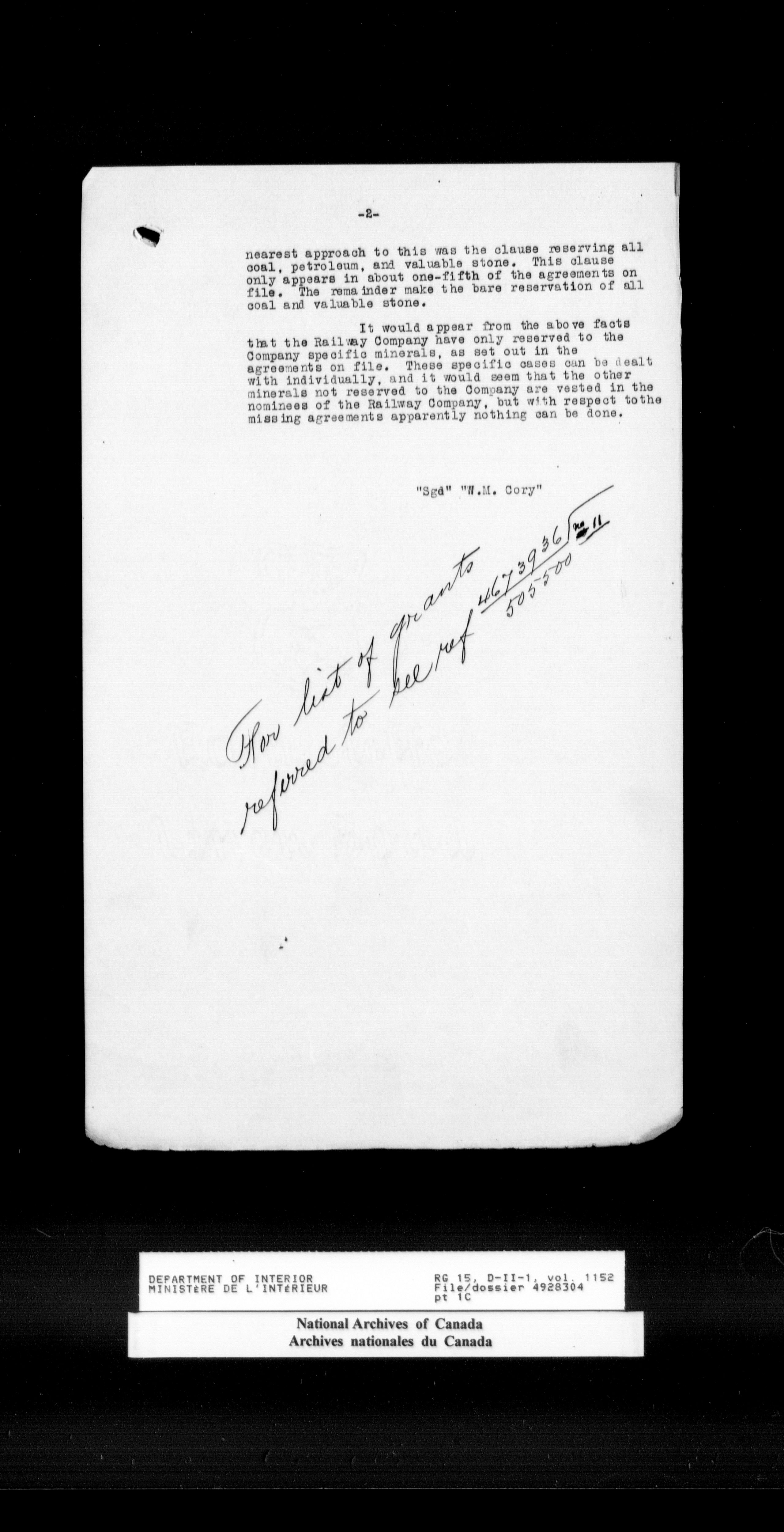 Central registry subject files created by the Dominion Lands Branch - 15520