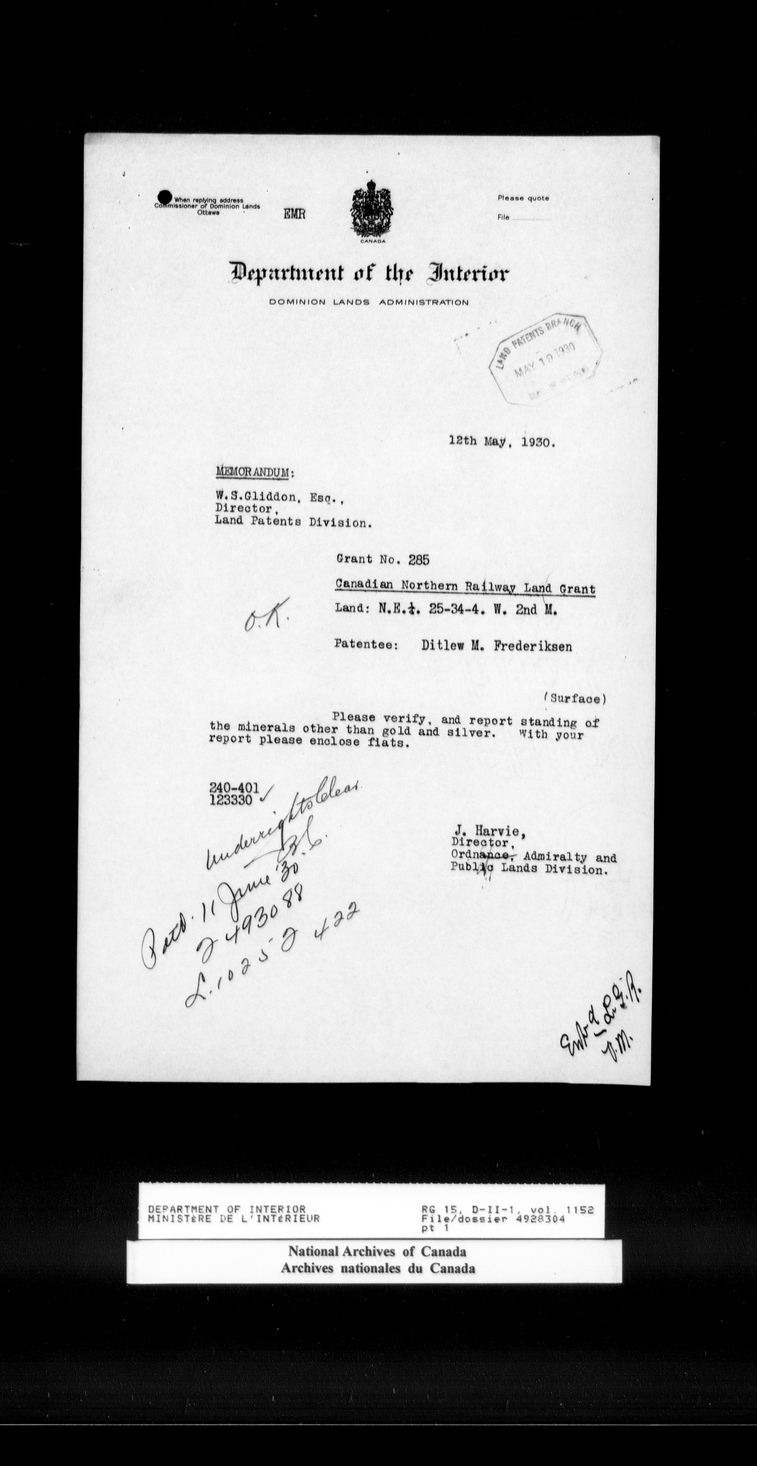 Central registry subject files created by the Dominion Lands Branch - 15520