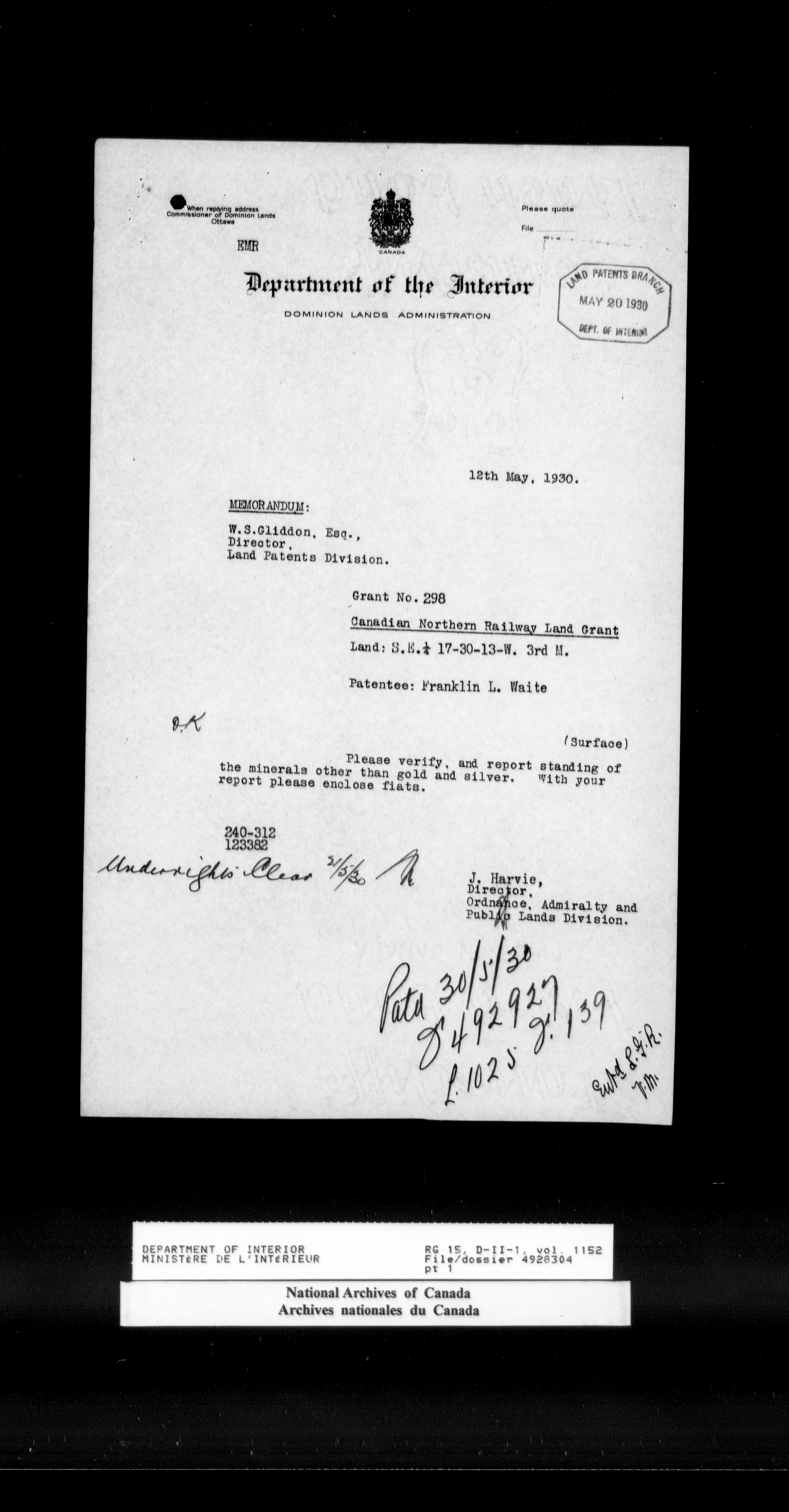 Central registry subject files created by the Dominion Lands Branch - 15520