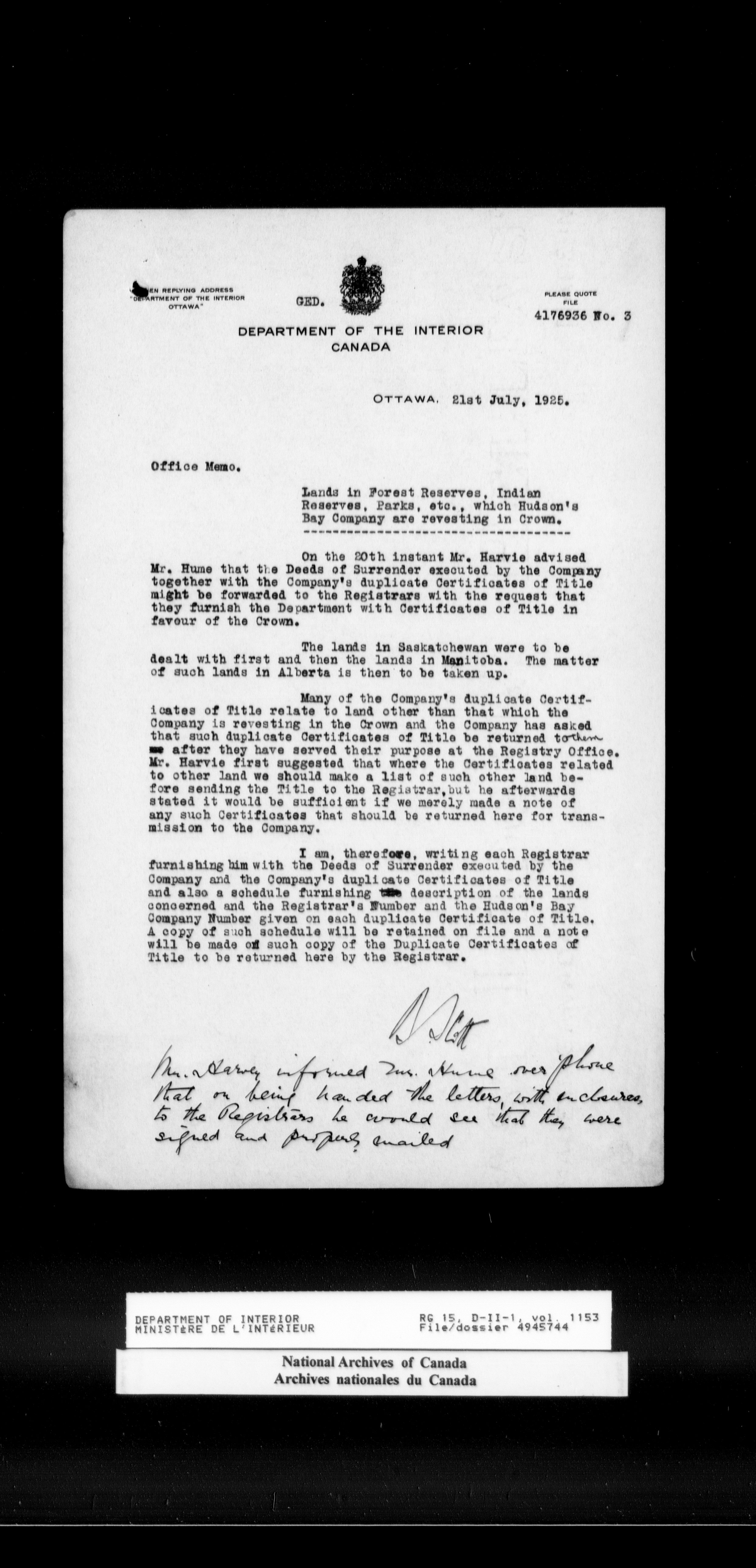Central registry subject files created by the Dominion Lands Branch - 15522
