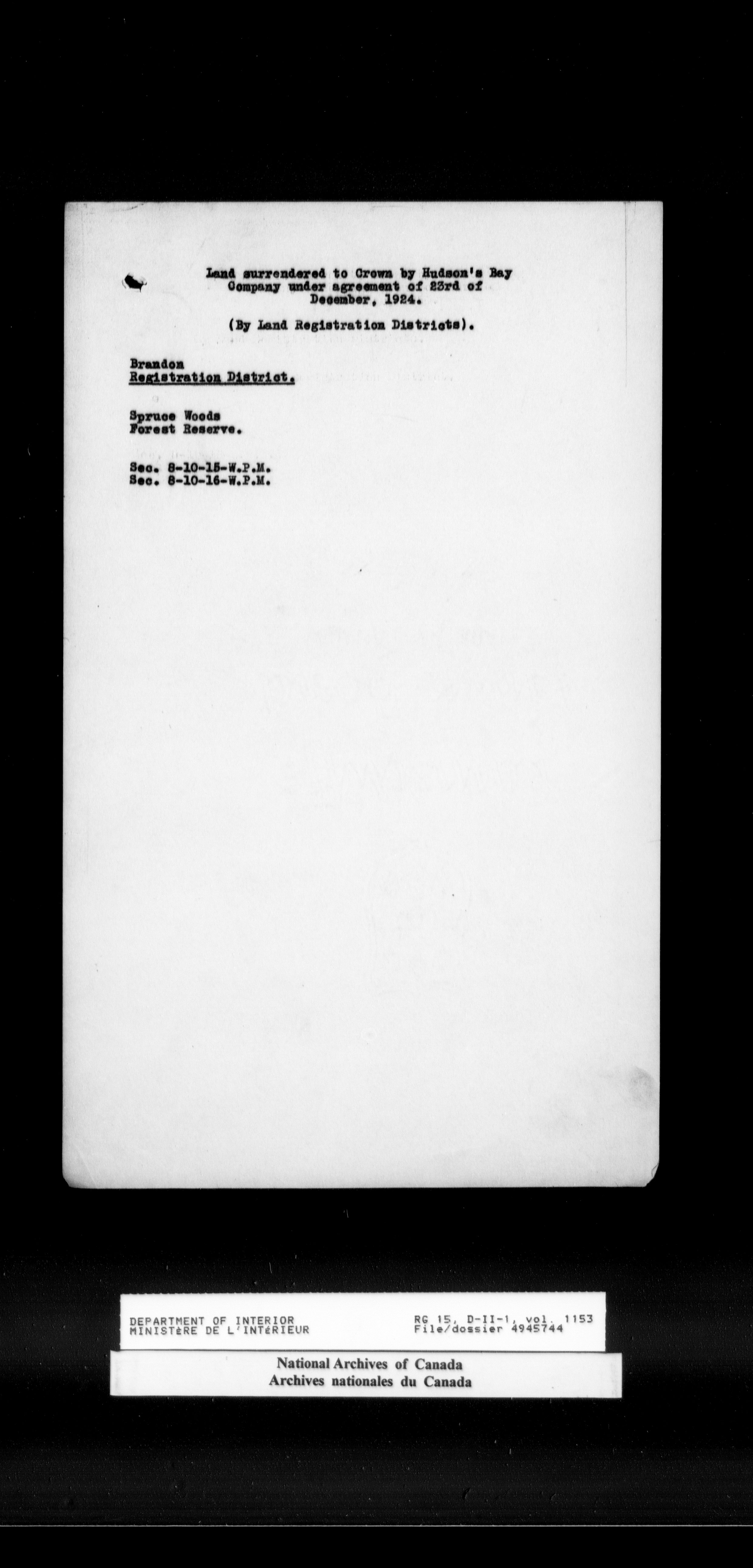 Central registry subject files created by the Dominion Lands Branch - 15522