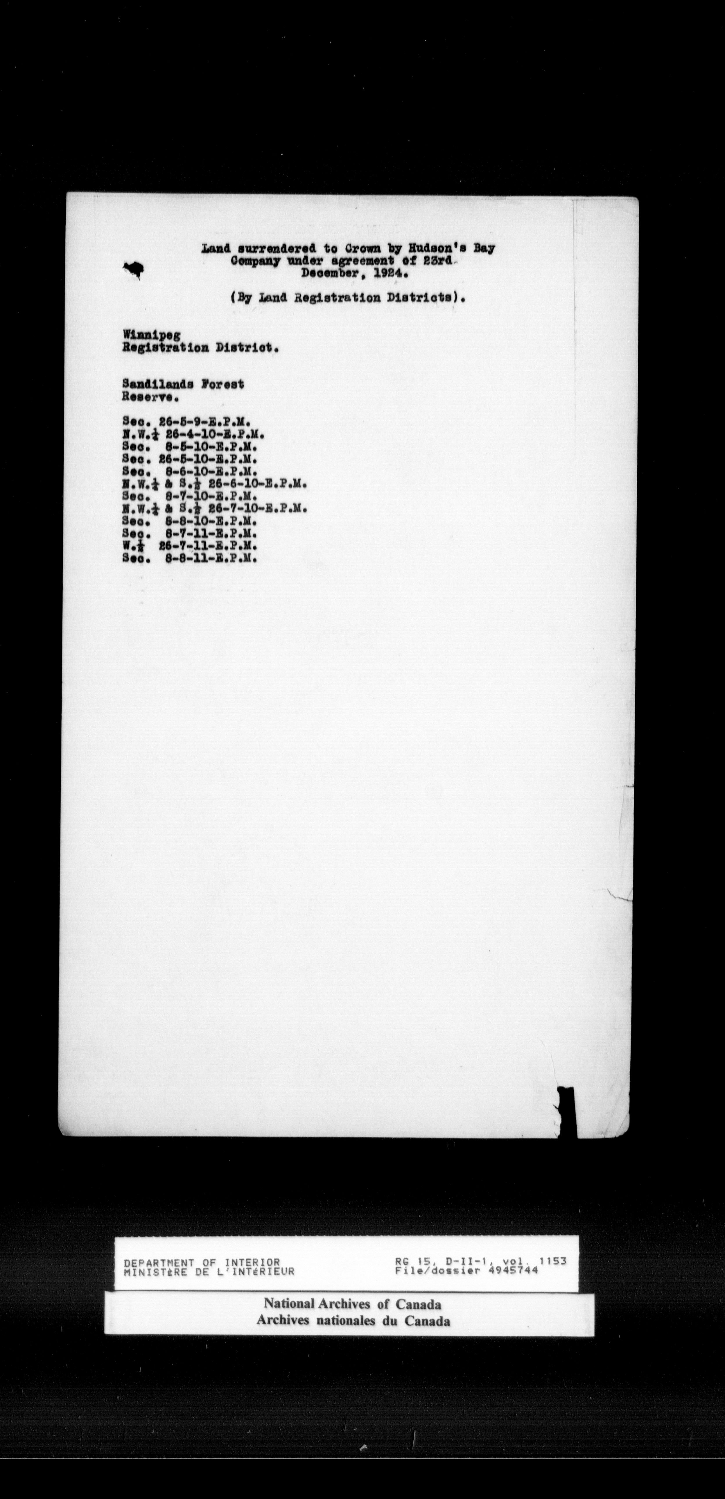 Central registry subject files created by the Dominion Lands Branch - 15522