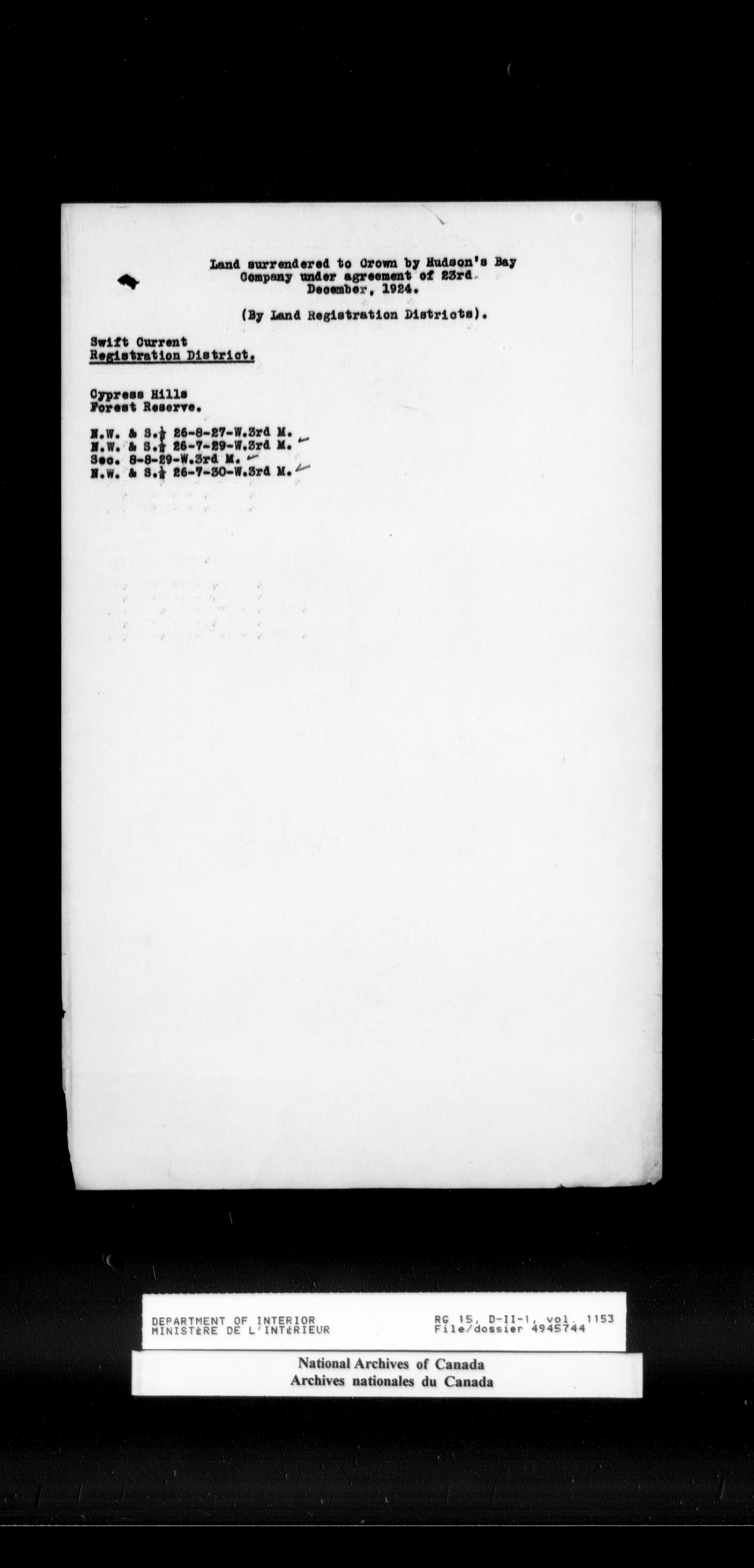 Central registry subject files created by the Dominion Lands Branch - 15522