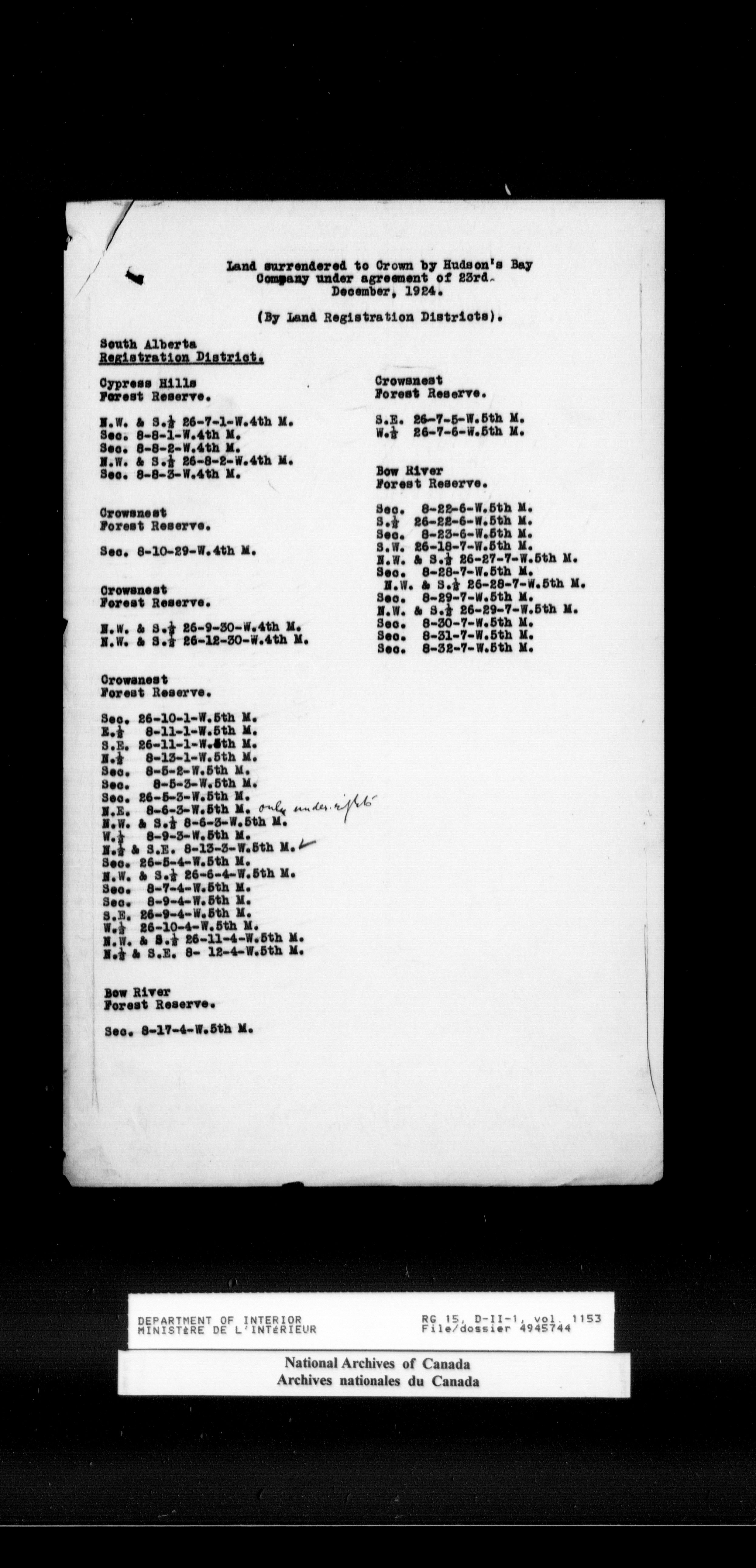 Central registry subject files created by the Dominion Lands Branch - 15522