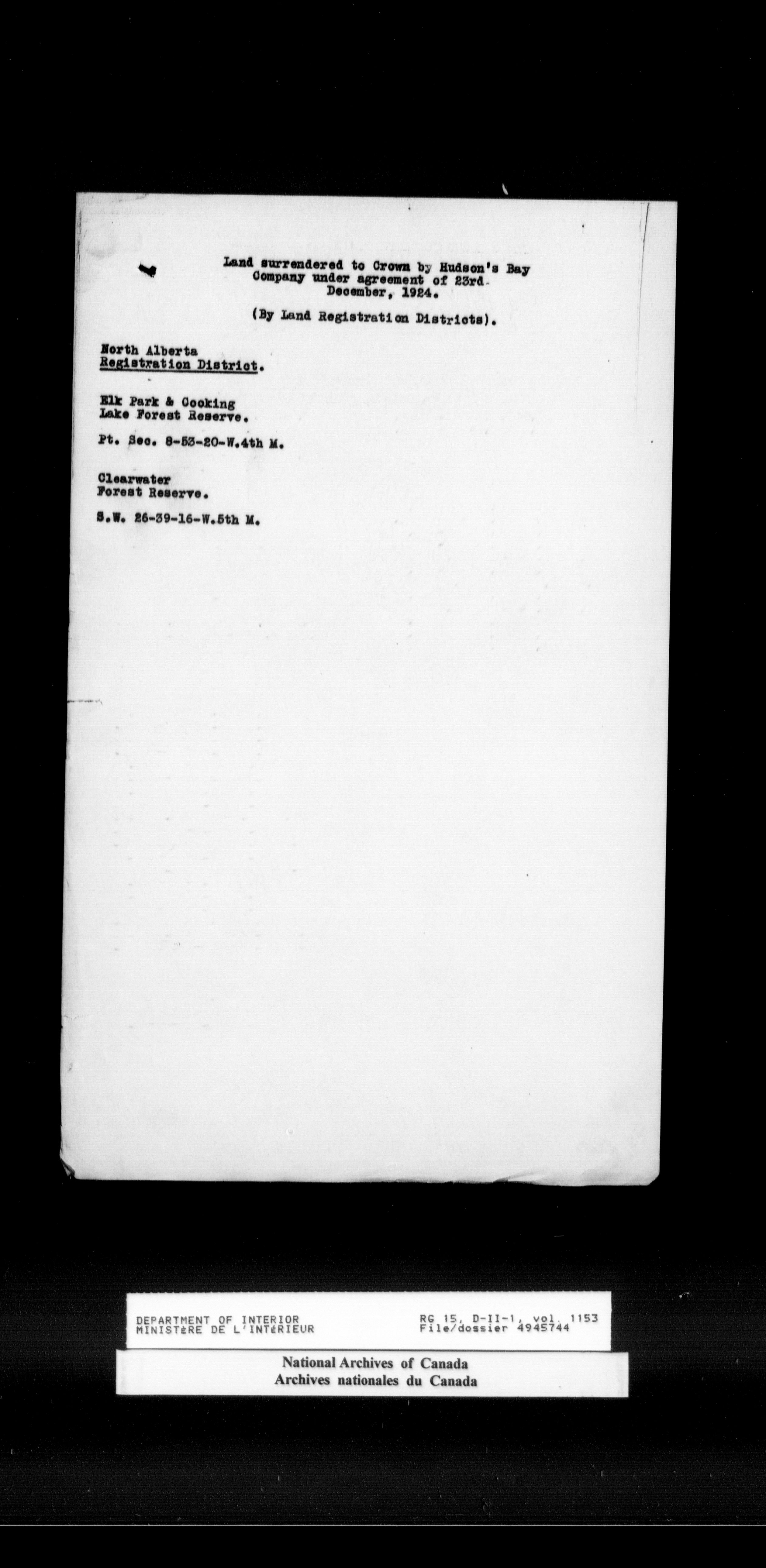 Central registry subject files created by the Dominion Lands Branch - 15522