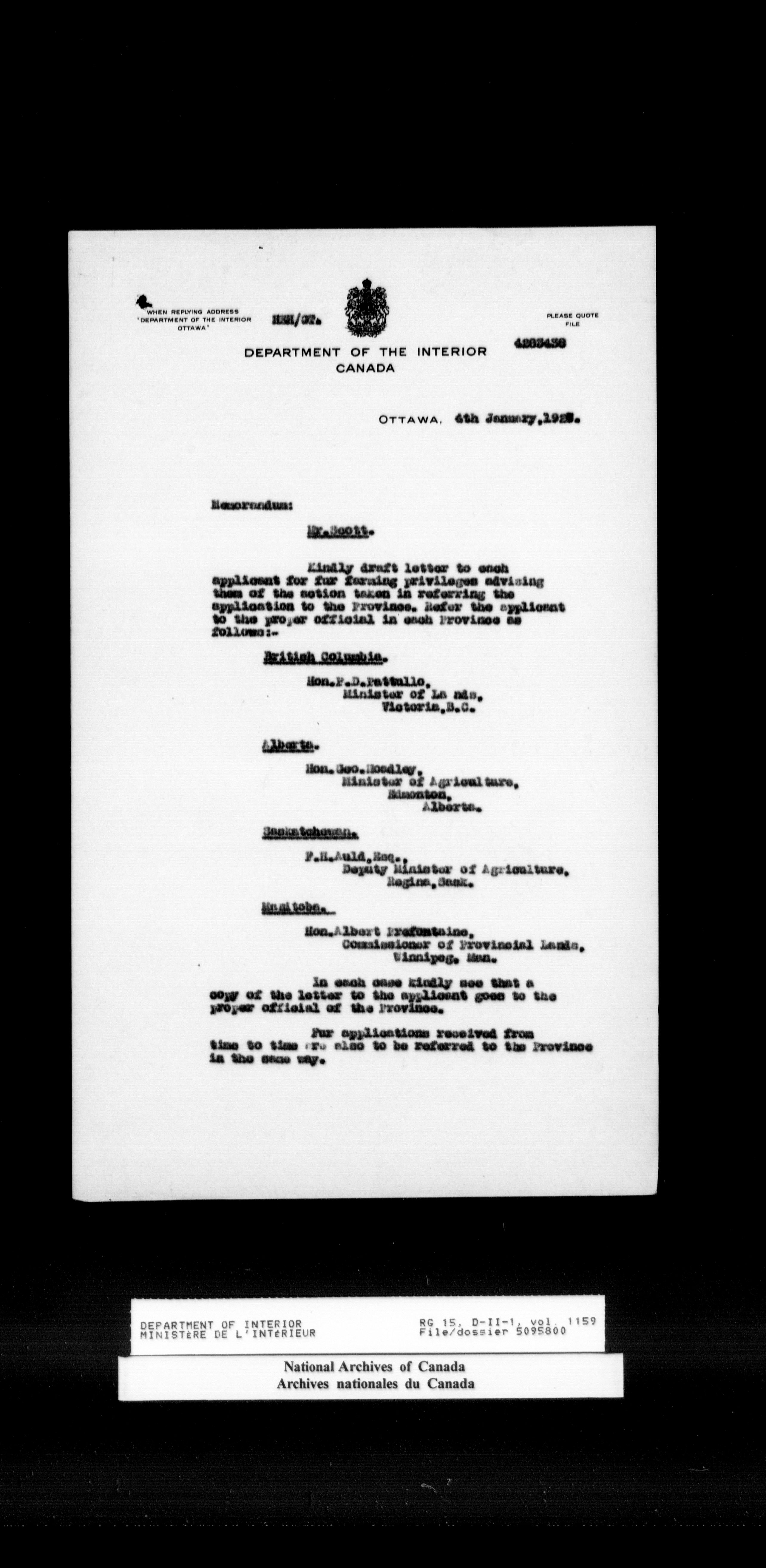 Central registry subject files created by the Dominion Lands Branch - 15528